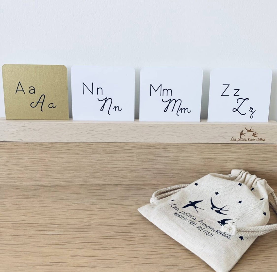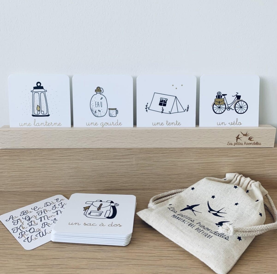 Un outil pour apprendre l’alphabet en s’amusant. 26 cartes imprimées recto-verso avec d’un côté la lettre en écriture majuscule et minuscule, scripte et cursive, et de l’autre côté un petit visuel illustré de manière poétique. Les illustrations représentent un univers autour de la nature et de l’aventure. Deux cartes supplémentaires représentent l’alphabet dans sa totalité. A utiliser au quotidien selon votre inspiration!