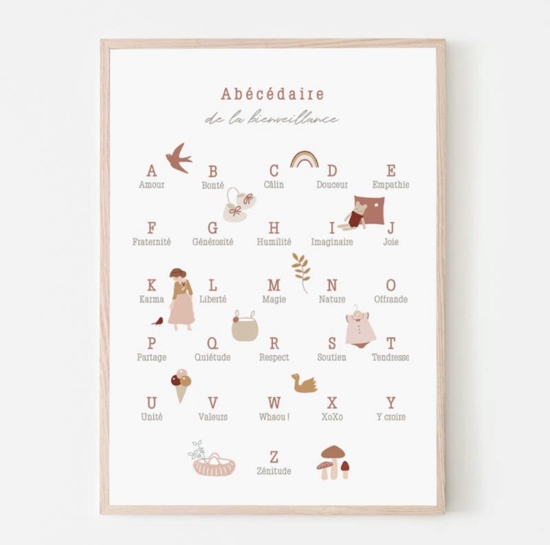 Affiche A3 – Abécédaire de la bienveillance – Rose.
