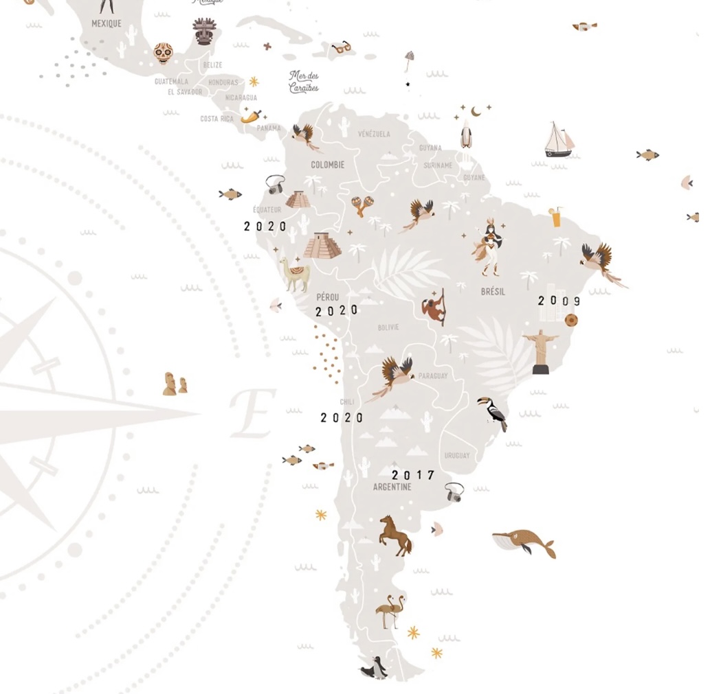 une carte du monde à tamponner pour dater tous les voyages passés et ceux à venir!