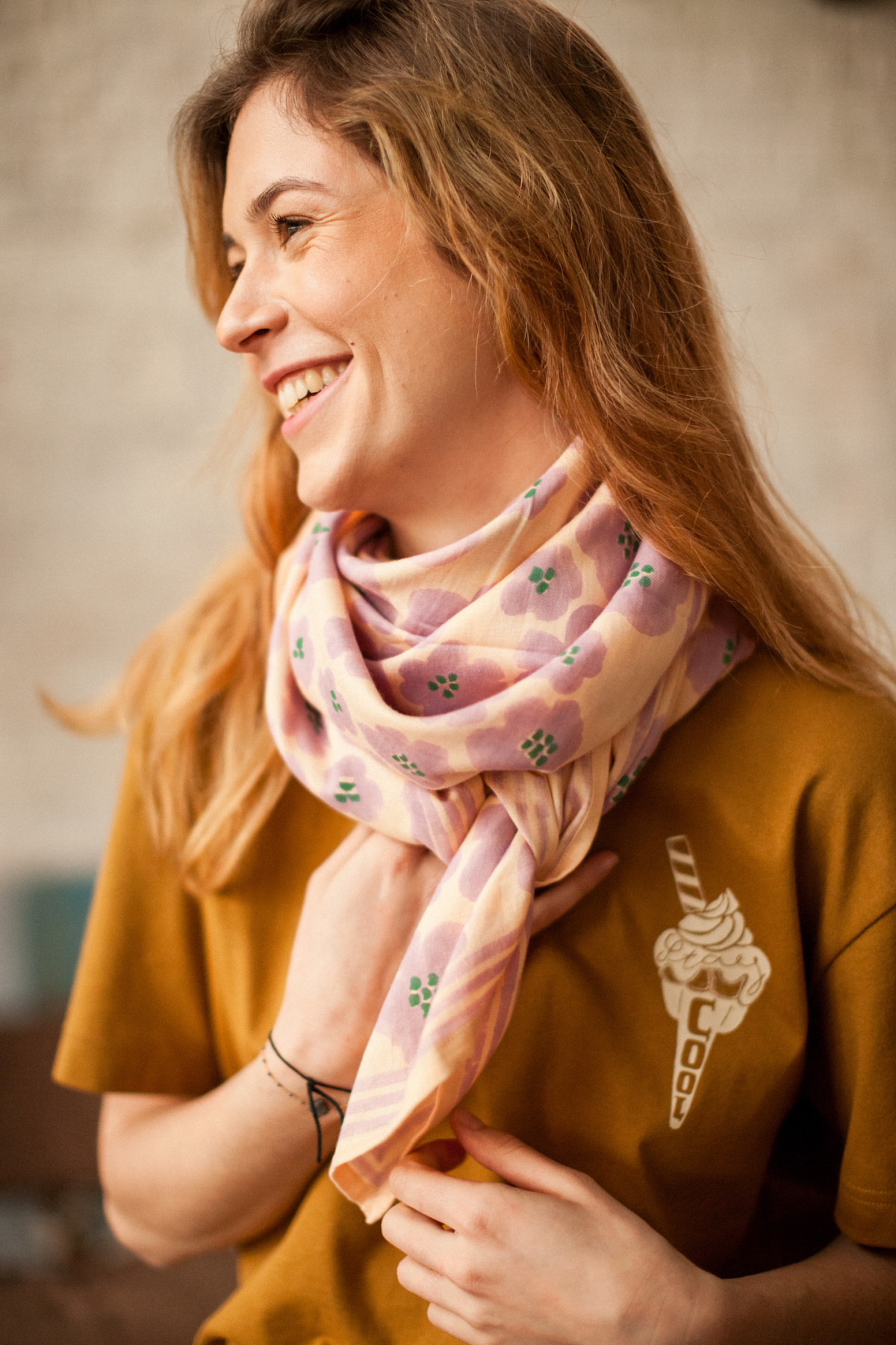 - En raison du procédé de teinture naturelle utilisé, le foulard peut déteindre par frottements sur d’autres matières. Nous vous recommandons de le laver à la main seul avant de le porter pour la première fois.