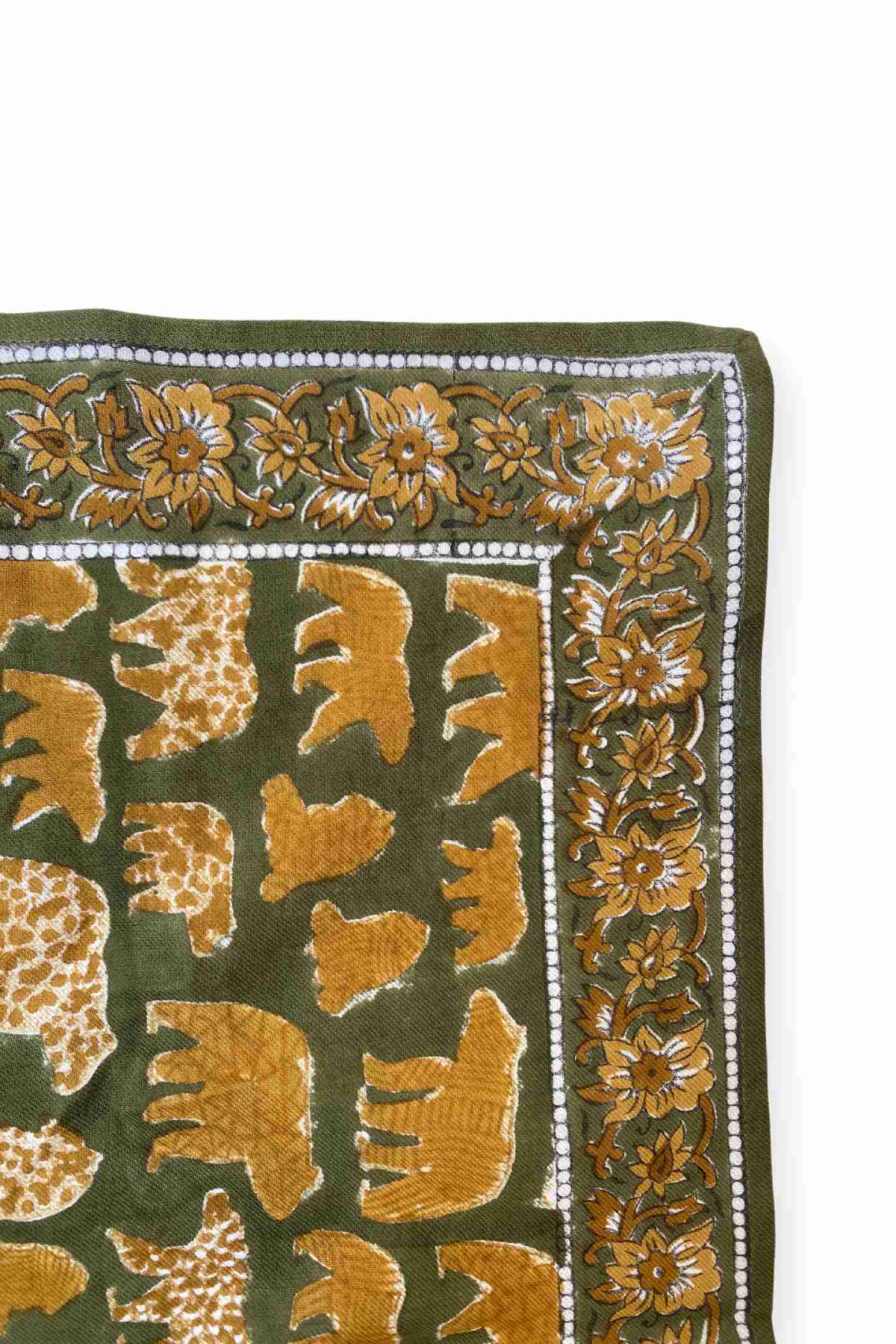 Notre Big foulard Latika en coton imprimé « Ours » Kaki s’accordera parfaitement avec tous vos looks de la saison. Confectionné en coton, il est ultra agréable à porter et son grand format vous permettra de l’enrouler et de le nouer selon vos envies. Pour petits et grands, notre foulard est à (s’)offrir, à partager, à échanger à l’infini ! Il est confectionné de manière artisanale grâce à la technique indienne du block-print. Ses couleurs sont réalisées à partir de pigments naturels. Cette confection manuelle peut entraîner certaines « irrégularités » dont nous aimons le charme ♡