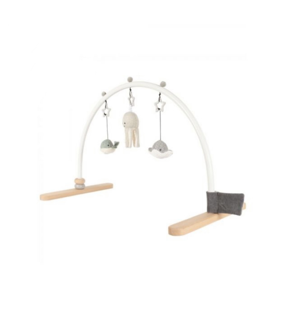 Le Baby Gym Ocean veillera à ce que votre tout-petit puisse se divertir pendant des heures. Baby Gym Ocean a 3 jouets amusants: une raie avec une cloche, une pieuvre avec une fonction vibrante et une baleine avec une mélodie heureuse.