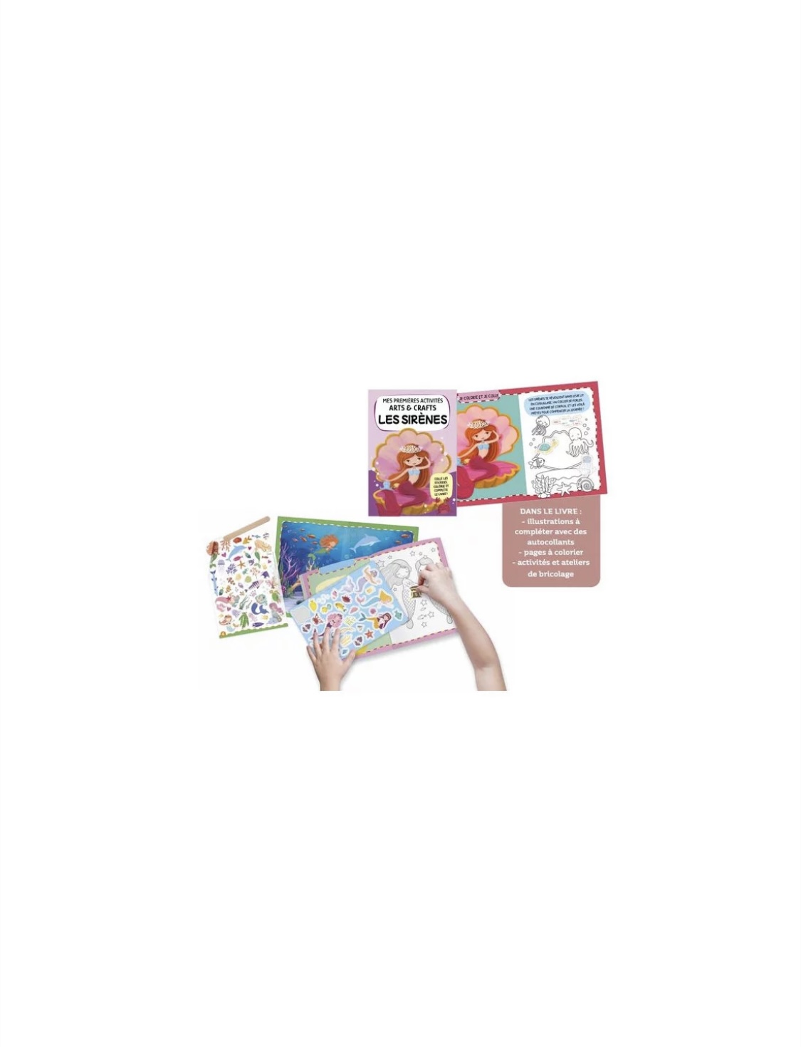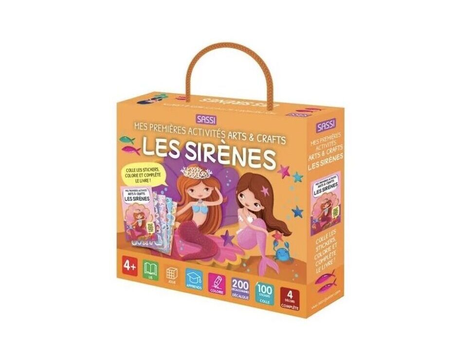Découvrez le coffret Les sirènes mes premières activités arts et crafts , un cadeau créatif destiné aux enfants dès 4 ans composé de coloriages, de stickers, d’images à décalquer et des activités manuelles pour stimuler l’apprentissage. Lis le livre de 16 pages et amuse-toi à réaliser les activités proposées. 100 stickers, 200 décalcomanies à sec et un stylo spécial décalquage pour compléter et colorier comme bon te semble les quatre décors du monde des sirènes. Un cadeau complet pour les enfants dès 4 ans.