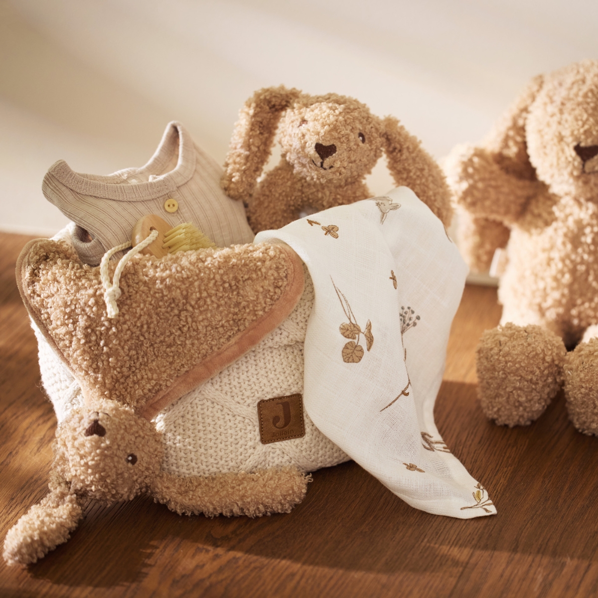 Ne plus jamais perdre la tétine et profiter de ce lapin très mignon en même temps ? Oui, c’est possible ! Cette adorable attache tétine de couleur Biscuit est dotée d’un cœur brodé en guise de nez et de deux cordons de jeu. A l’arrière, le tissu est en velours doux et à l’avant, en bouclette. Le passepoil est également en velours et nous sommes persuadés que votre petit sera adepte de ce lapin.