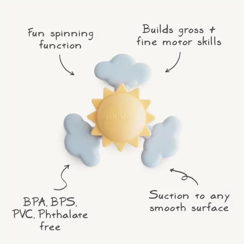 Les jouets de Mushie’s Spinner Toy aux motifs ludiques stimuleront l’imagination des tout-petits. Fabriqué en plastique et en silicone alimentaire, ce jouet est conçu pour créer des expériences sensorielles pour les enfants. Il est également doté d’une ventouse qui permet au jouet de rester en place, ce qui évite les chutes accidentelles et encourage le jeu autonome. Essayez la ventouse sur les portes, les chaises, dans le bain, etc. Le spinner est le divertissement parfait pour la maison et les déplacements.