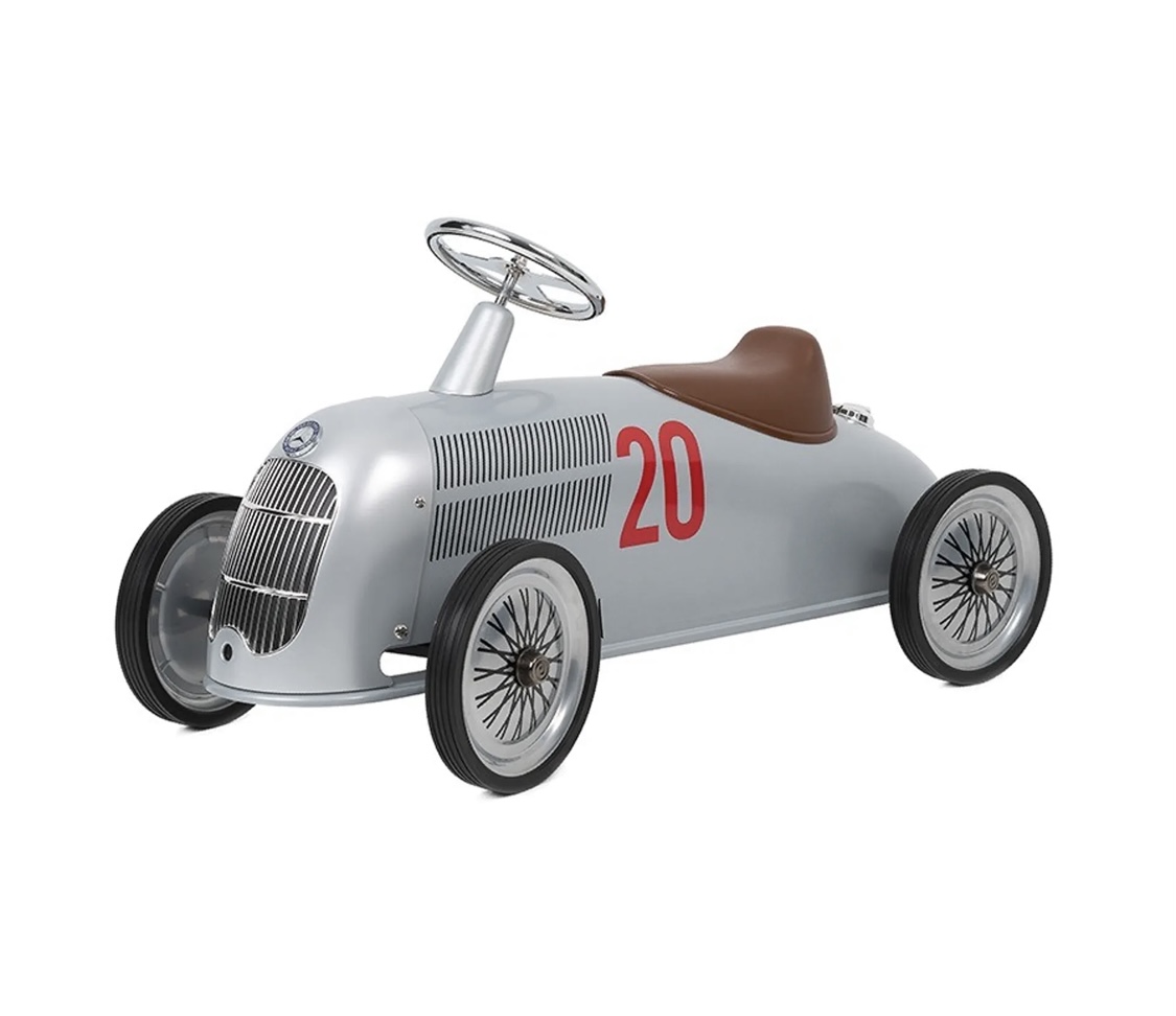 Baghera est fière de présenter aux grands et petits pilotes le Rider Mercedes-Benz W 25, inspiré de la légendaire Flèche d’argent. Grâce à son design aérodynamique, ce bolide est idéal pour les enfants à partir de 2 ans.