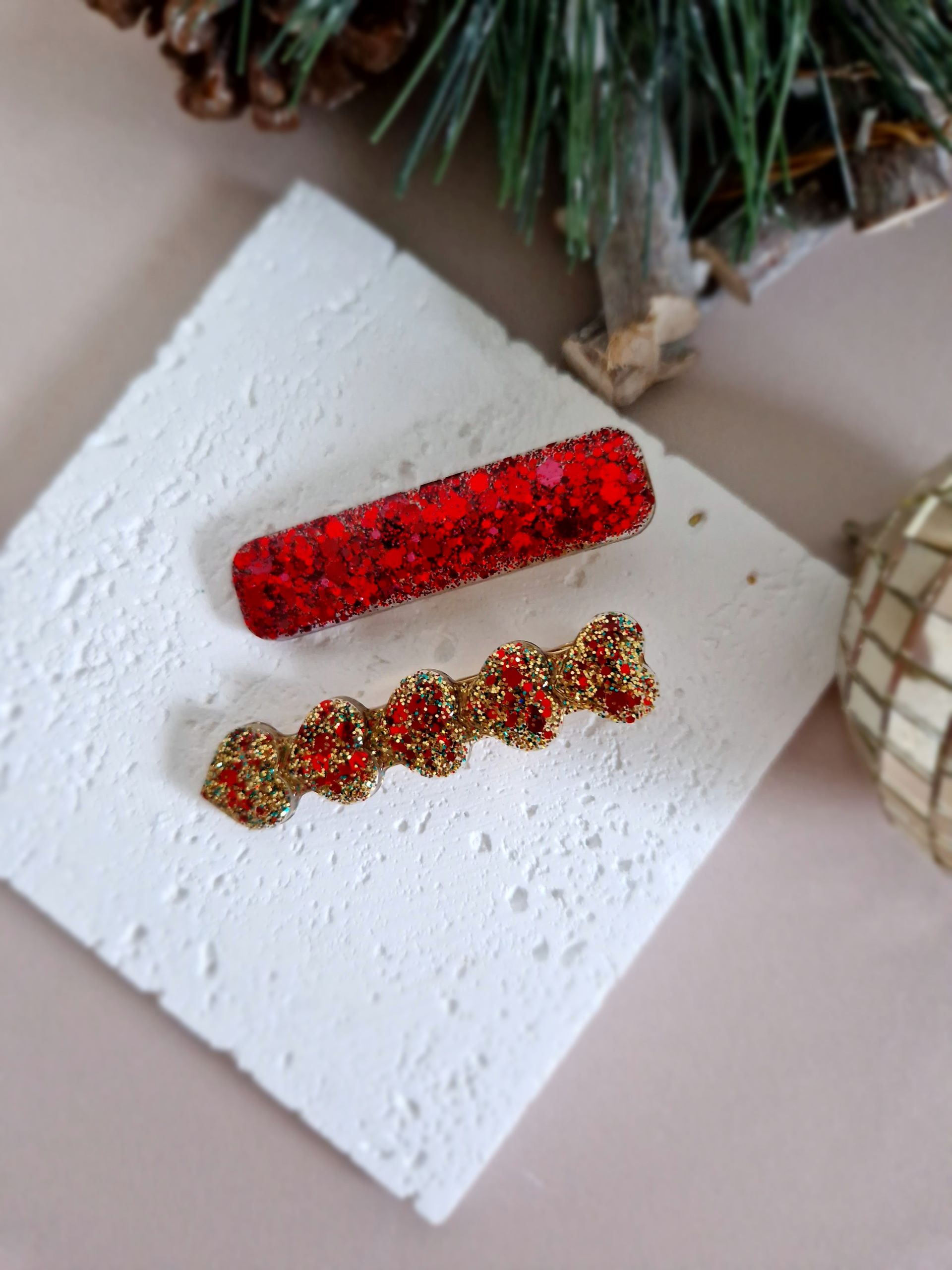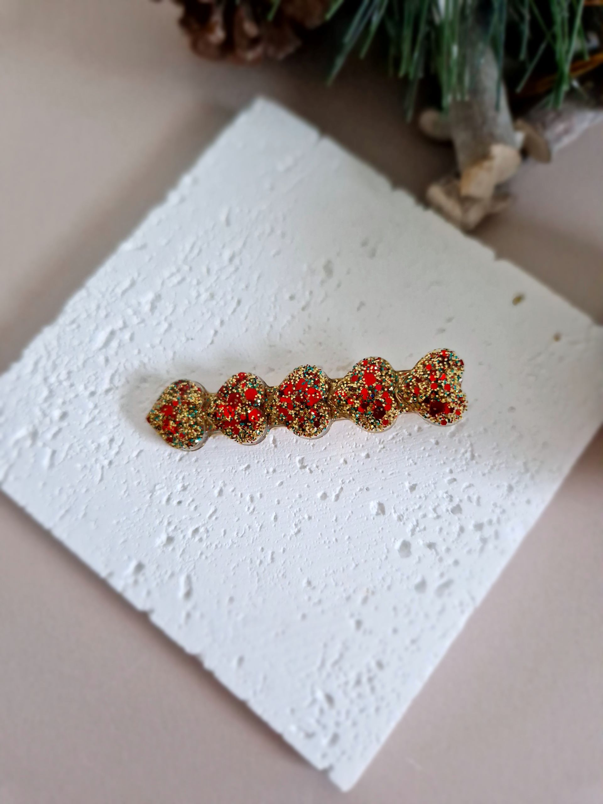 Chaque barrette est faite main, en résine de marque française, avec inclusion de paillettes.