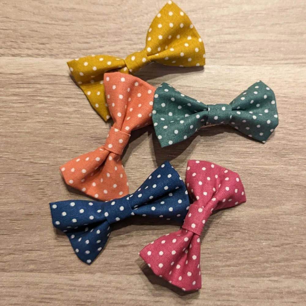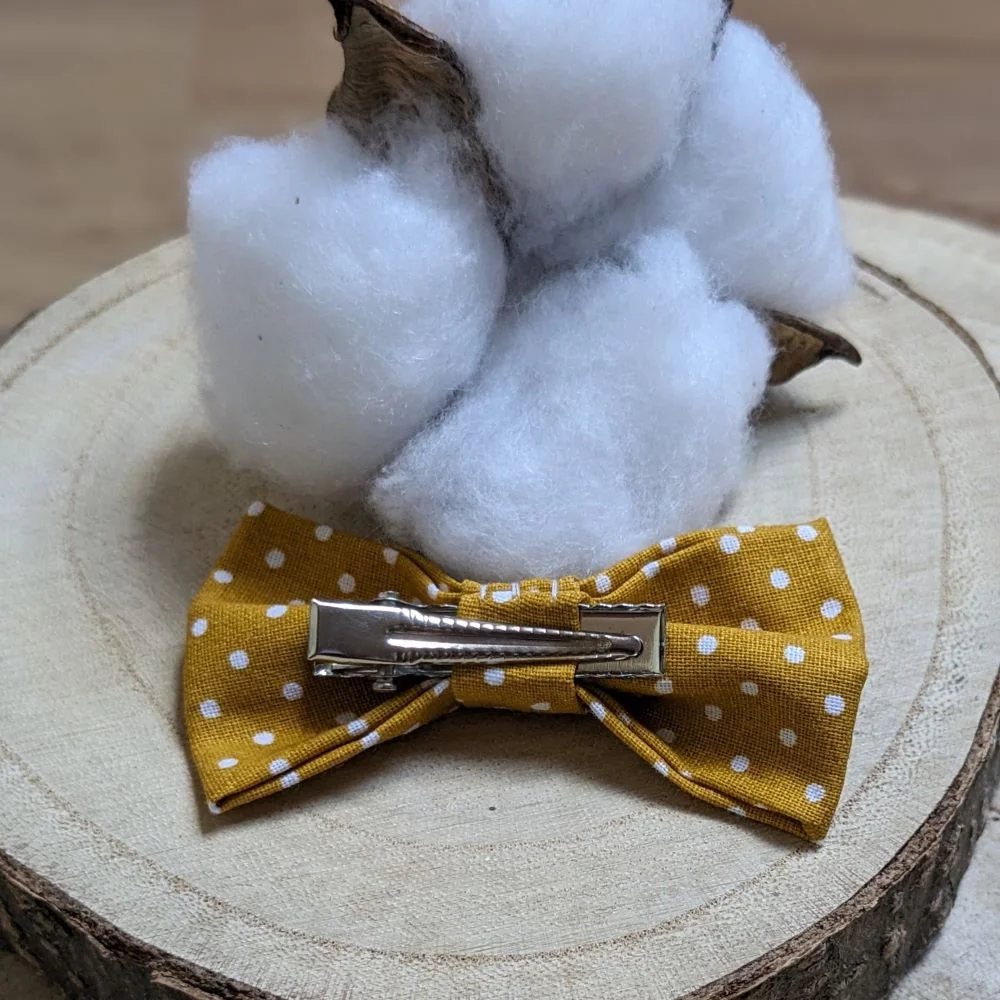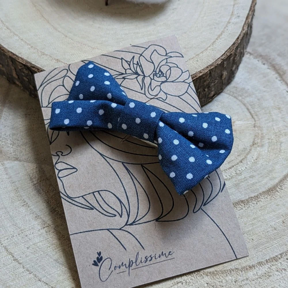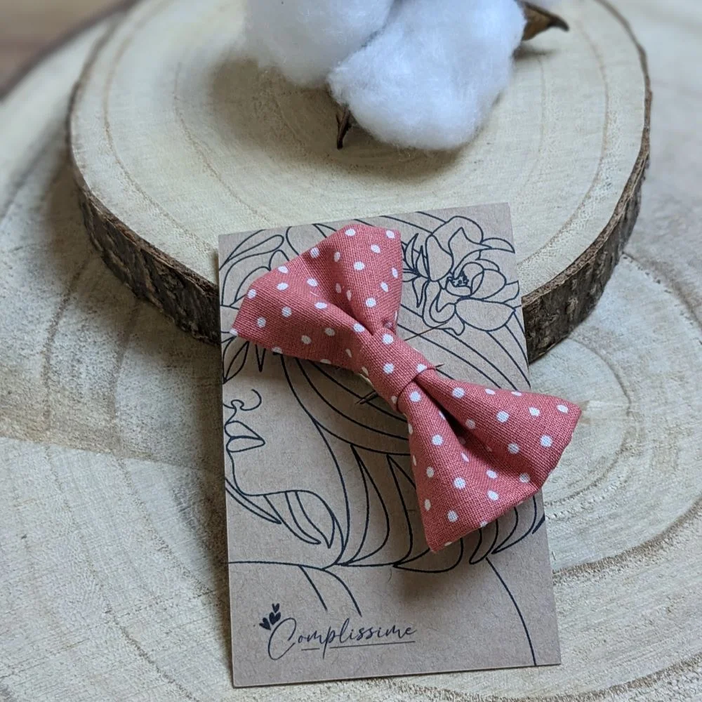 Barrette nœud en coton coloris au choix à pois