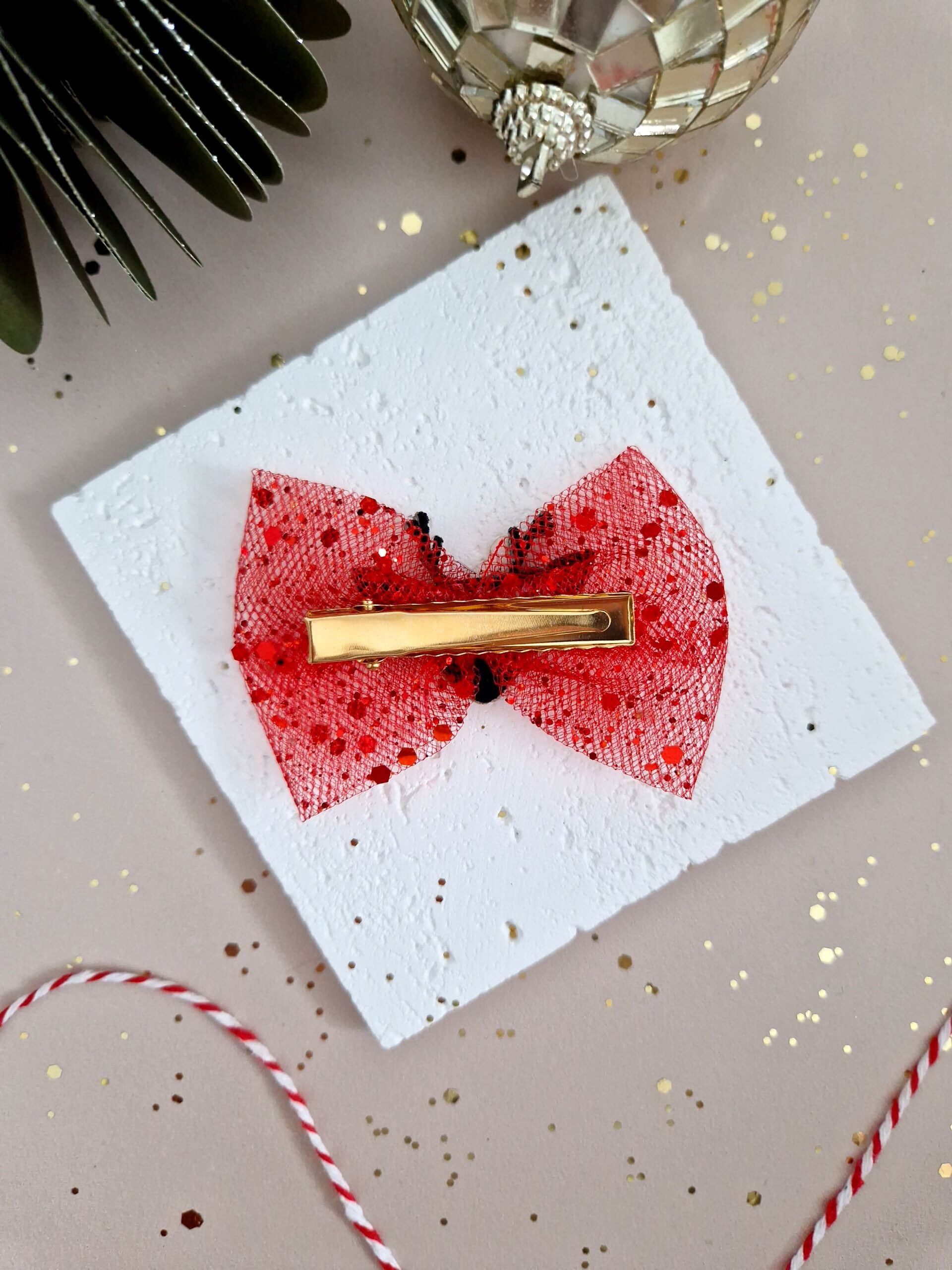 Ajoutez une touche de magie à la coiffure de votre petite princesse avec cette magnifique barrette nœud en tulle pailleté. Parfaite pour célébrer Noël avec élégance et féérie, cette barrette est conçue pour sublimer chaque look festif !