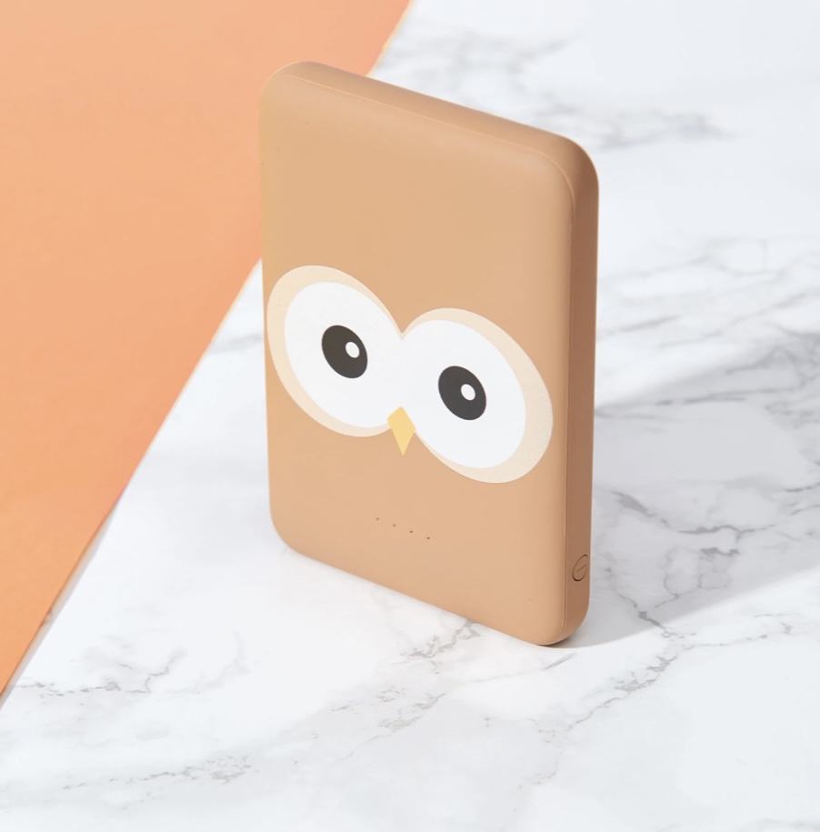 Voici la batterie de secours trop mignonne. Elle pourra recharger deux téléphones en même temps à 100%. Modèle: hibou.