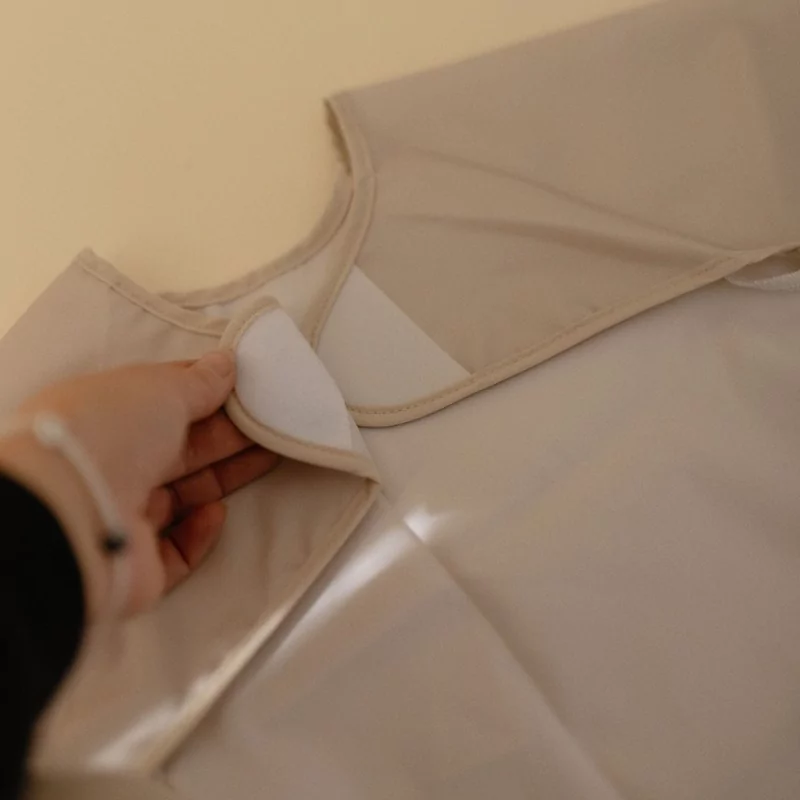 - Le bavoir à manches longues mesure 41,5 cm de long et 32,5 cm de large