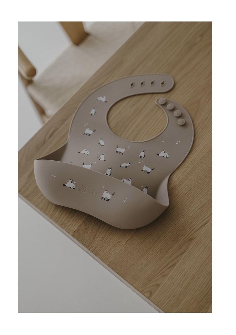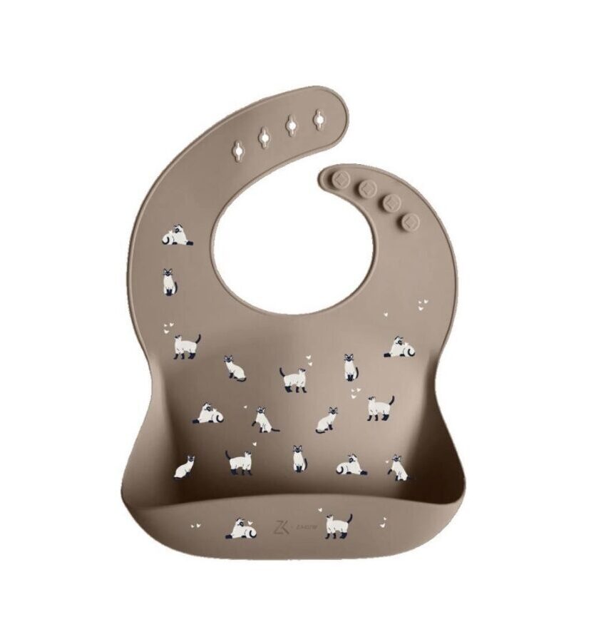Bavoir » minouche taupe», pour garder les vêtements propres durant les repas de bébé.