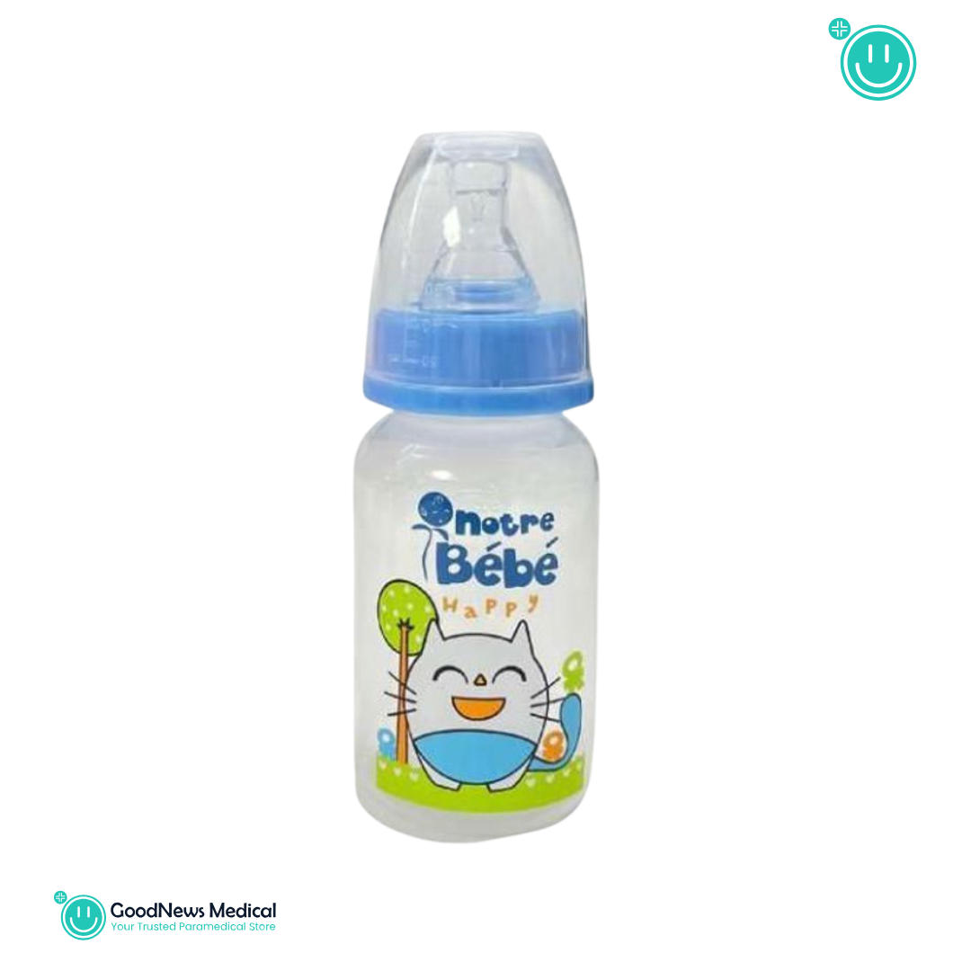 Biberon en polypropylène (PP) sans BPA, sûr et léger Capacité de 120 ml, idéale pour les nouveau-nés Tétine souple à forme physiologique, proche du sein maternel Système anti-colique pour réduire les gaz et les ballonnements Parfait pour les petites quantités de lait ou d’eau Convient dès la naissance Facile à nettoyer et à assembler Format compact, idéal pour les repas courts ou en déplacement