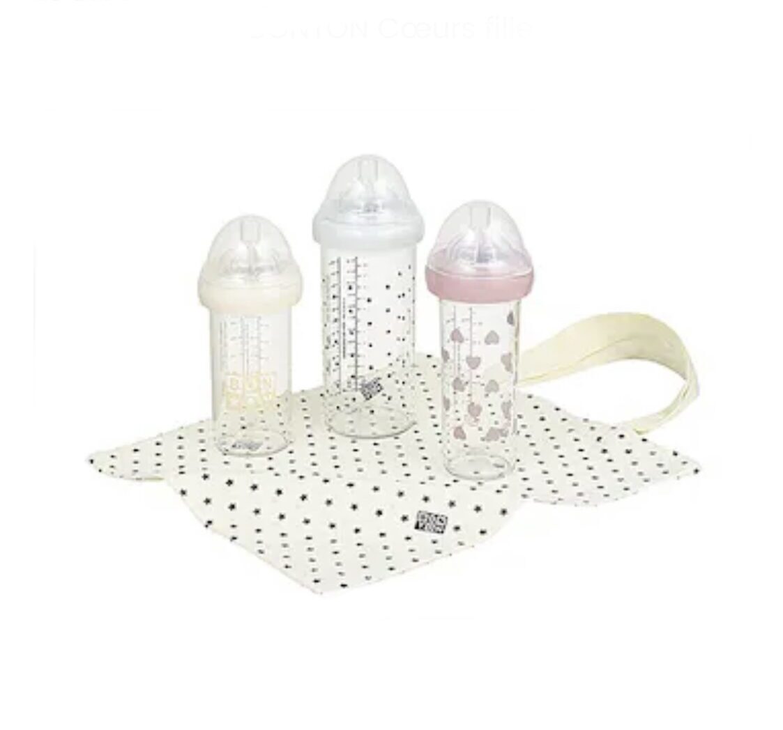 Biberons set de 3. Collection BONTON rose. Le Biberon Français.