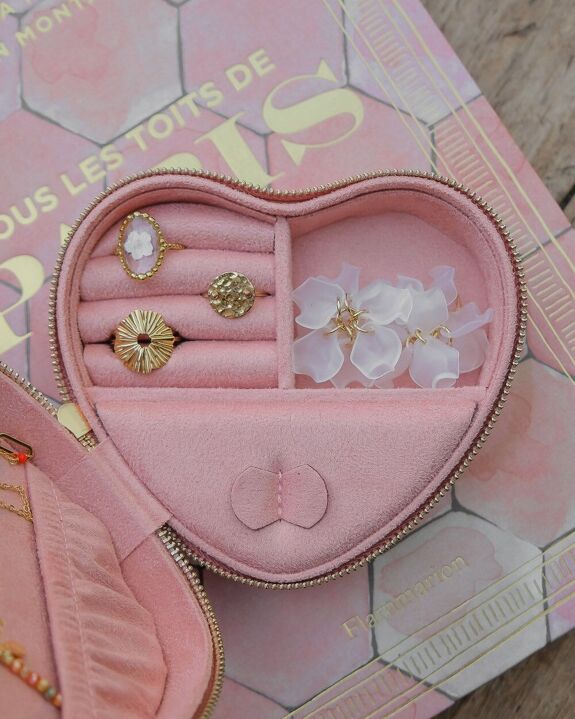 Quoi de plus mignon que notre boîte à bijoux en forme de coeur ? Elle est évidemment un cadeau idéal si vous avez un doux message à faire passer à quelqu’un que vous aimez mais elle peut aussi vous permettre d’emporter vos bijoux avec élégance en voyage !