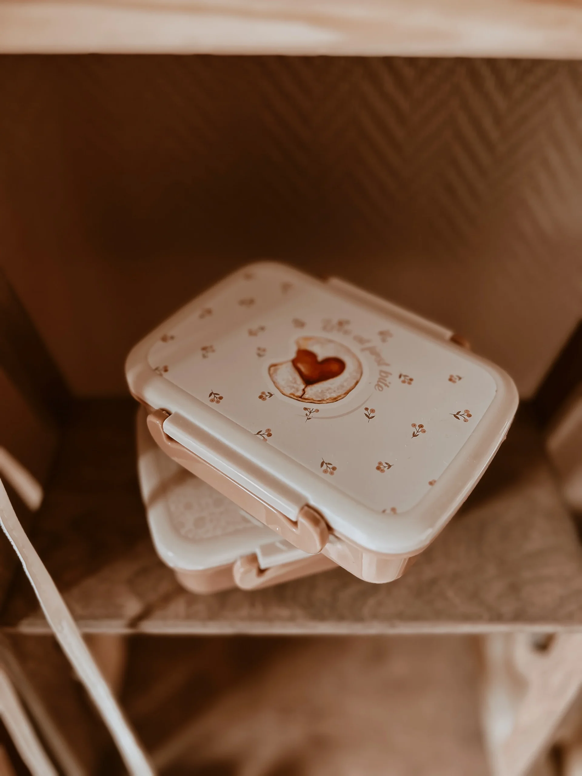 Jolie boîte à goûter avec un séparateur (amovible) à l’intérieur.