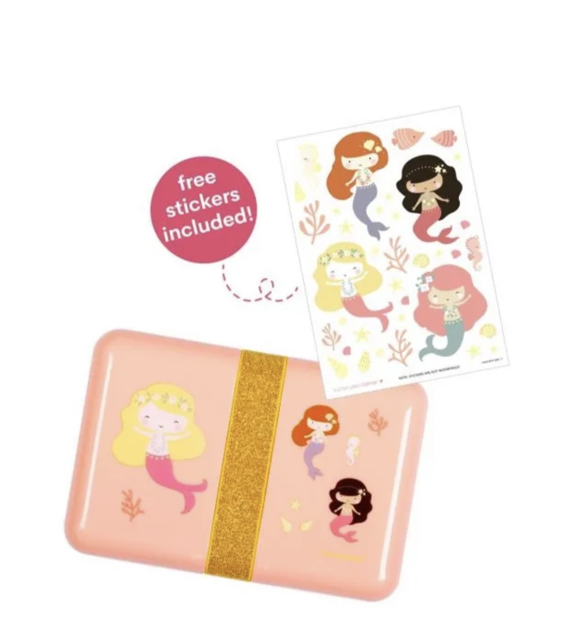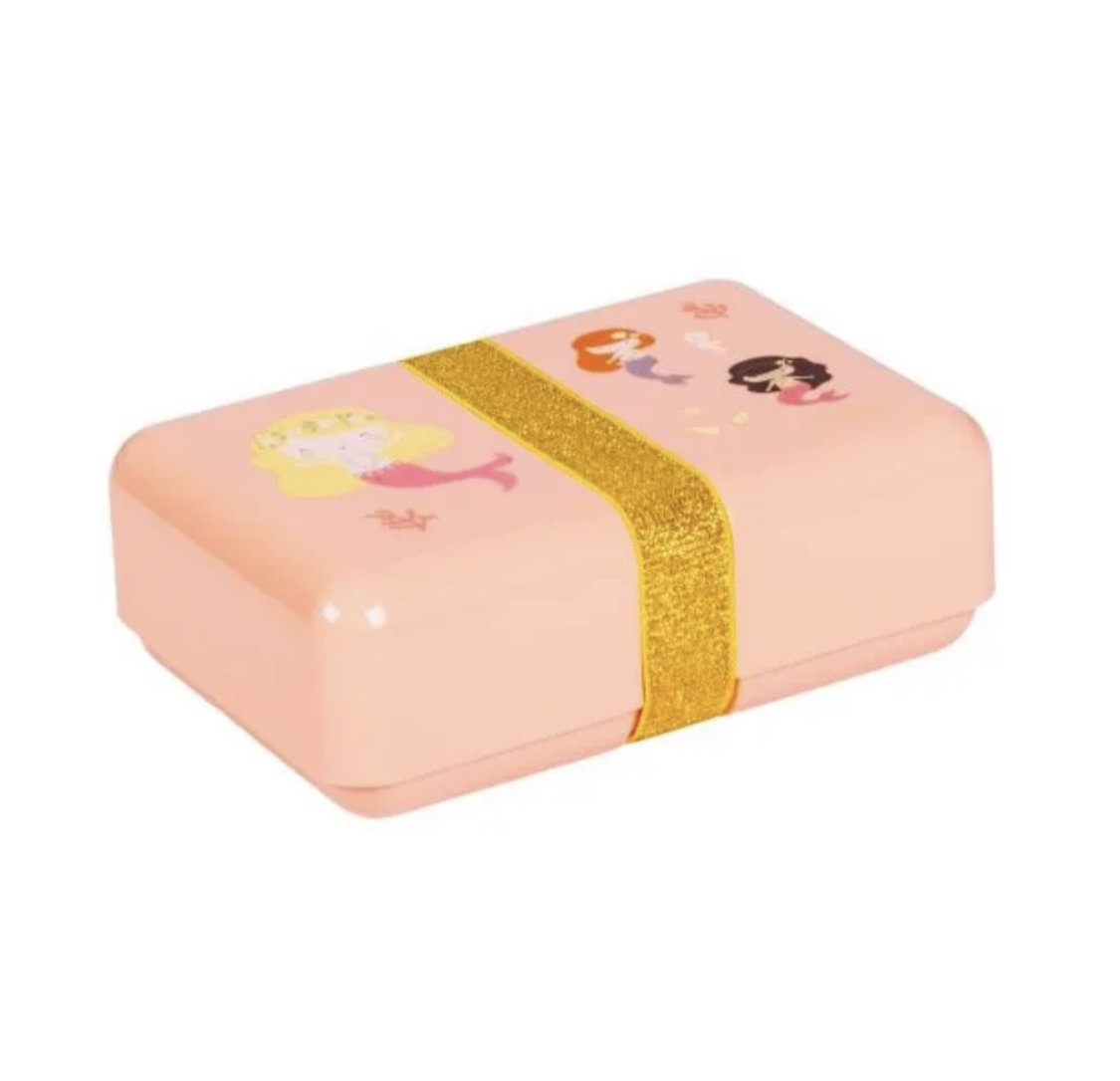 Jolie boîte à lunch/ tartines, avec un élastique. Elle est facile à ouvrir et à fermer pour les petites mains. Elle est spacieuse, pour les repas à l’école.