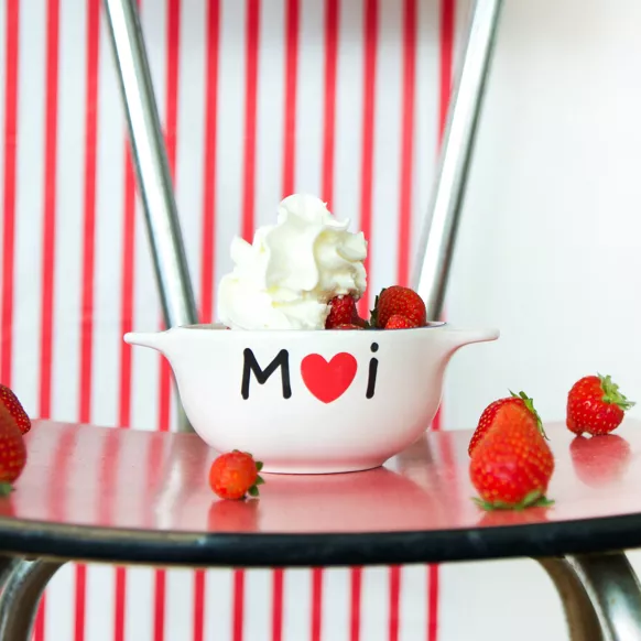Les designers de la marque « Pied de Poule » ont revisité et modernisé ce bol pour lui donner une touche tendance et surtout y inscrire de nombreux textes et messages humoristiques !