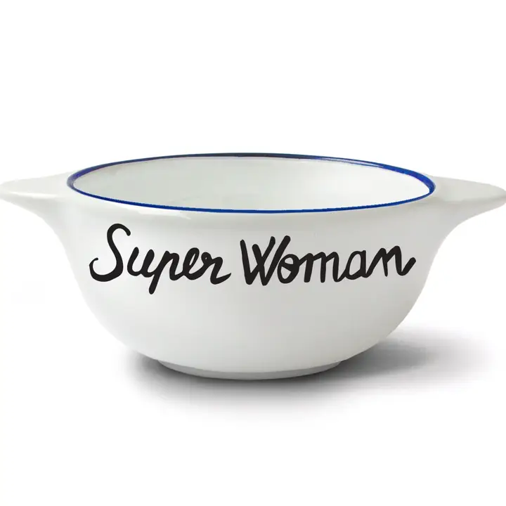 Les designers de la marque « Pied de Poule » ont revisité et modernisé ce bol pour lui donner une touche tendance et surtout y inscrire de nombreux textes et messages humoristiques !