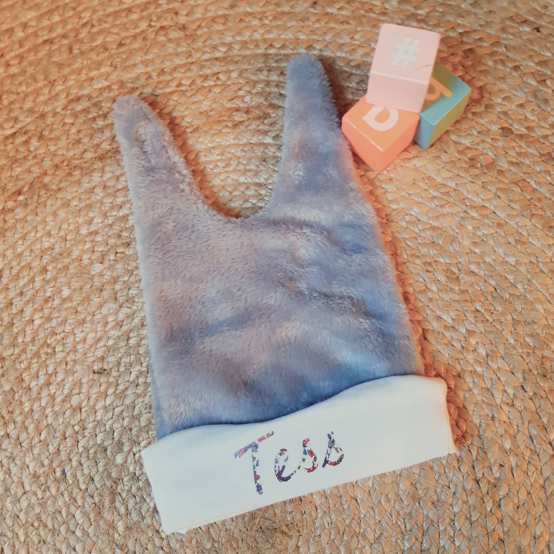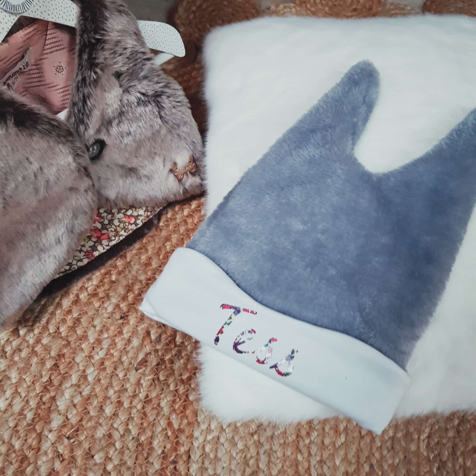 Joli bonnet bébé personnalisé fabriqué en petites séries pour la saison hiver.