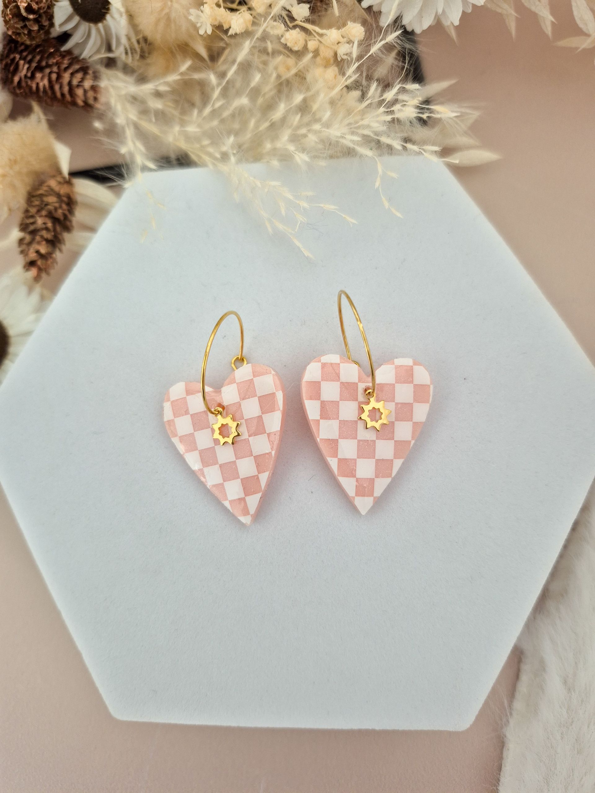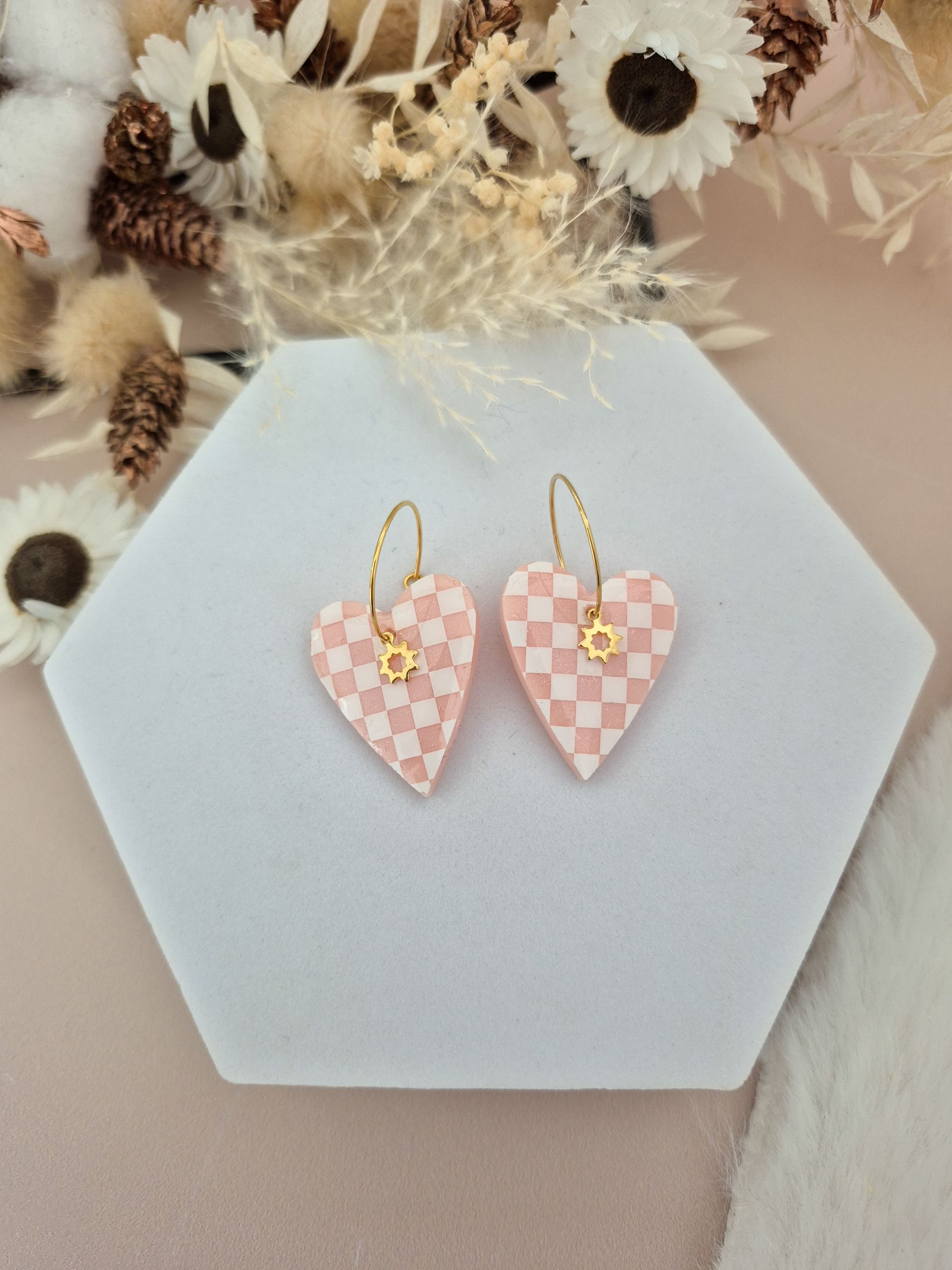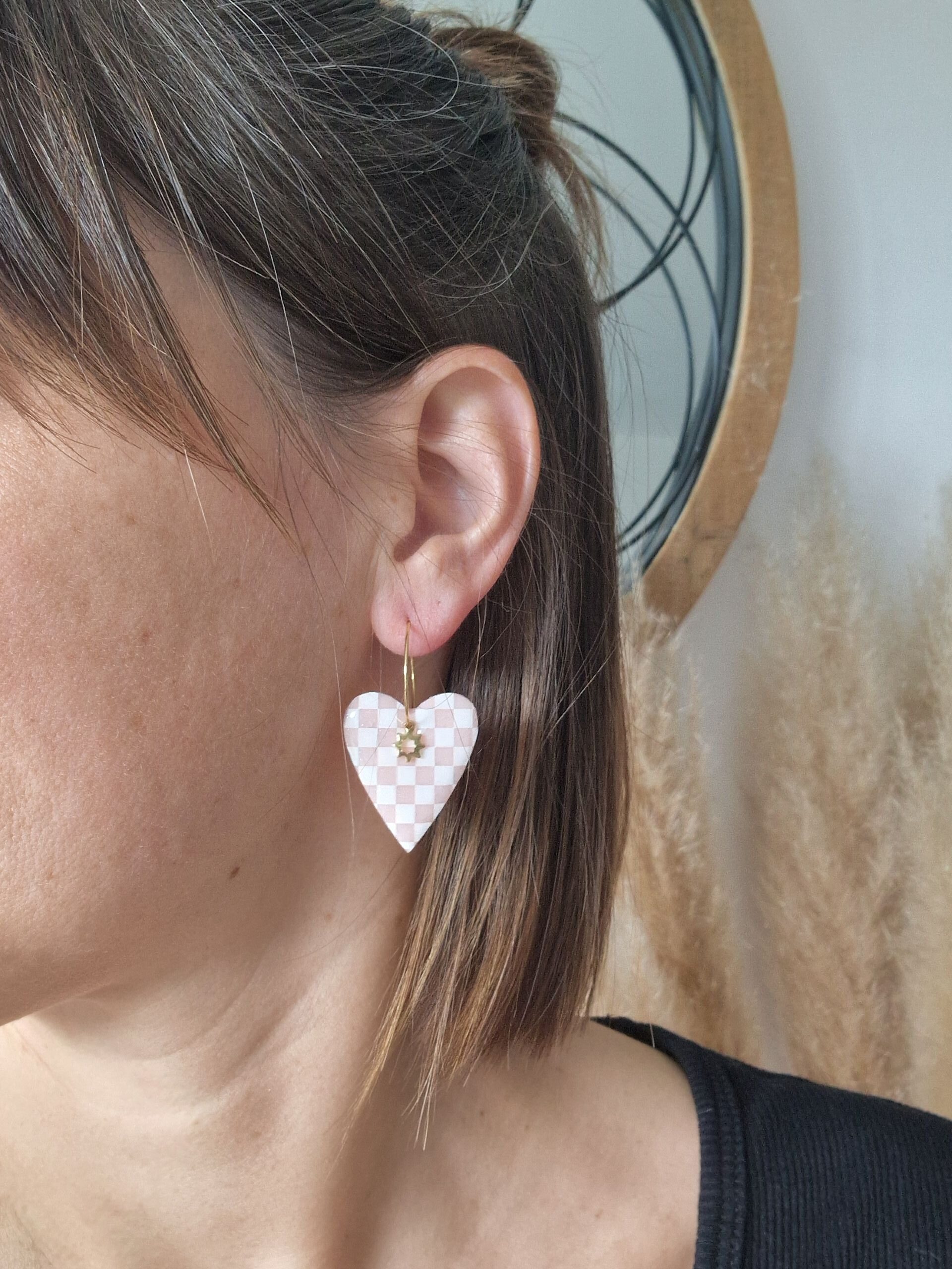 Succombez au charme de nos boucles d’oreilles Lili en forme de cœur, délicatement confectionnées en résine et ornées de paillettes scintillantes. Légères et confortables, elles apportent une touche d’élégance et de fantaisie à toutes vos tenues