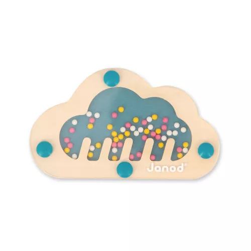 - Également présent dans cette box bébé, un bâton de pluie en bois en forme de nuage qui va attiser la curiosité de votre bambin : sa forme arrondie est parfaite à prendre en main, et les petites billes colorées sont fascinantes à regarder.
