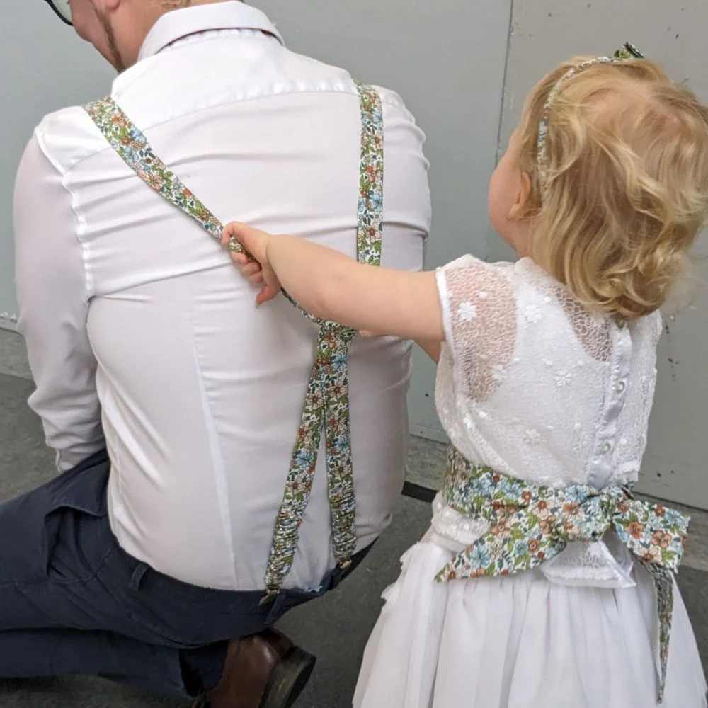 Cette paire de bretelles réglable, pour hommes et femmes, nous fait redécouvrir les délicieuses teintes et formes du passé. Les couleurs douces et naturelles de ces fleurs des champs habilleront vos tenues lors de toutes les occasions de la vie ! Ces bretelles sont conçues avec 4 pinces pour éviter les désagréments dans le dos lors de la position assise. Deux boucles métalliques permettent d’ajuster parfaitement les bretelles à votre pantalon / jupe. Deux élastiques sont positionnés dans le dos pour une meilleure tenue et pour un maximum de confort. Ce tissu est un joli coton vintage qui fera ressortir…
