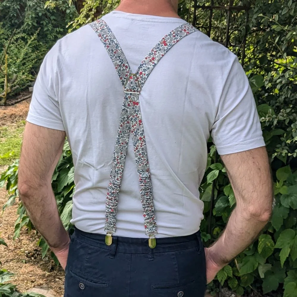 Bretelles pour enfants et adultes, réglables à réaliser avec les tissus coton de votre choix ! Tendance et élégant, cet accessoire coloré / fleuris apportera à votre tenue une touche chic et originale. Ces bretelles sont conçues avec 4 pinces pour éviter les désagréments dans le dos lors de la position assise. Deux boucles métalliques permettent d’ajuster parfaitement les bretelles à votre pantalon / jupe. Deux élastiques sont positionnés dans le dos pour une meilleure tenue et pour un maximum de confort ! À adopter sans attendre ! Sur-mesure : Si vous souhaitez un autre coloris ou une taille personnalisée…