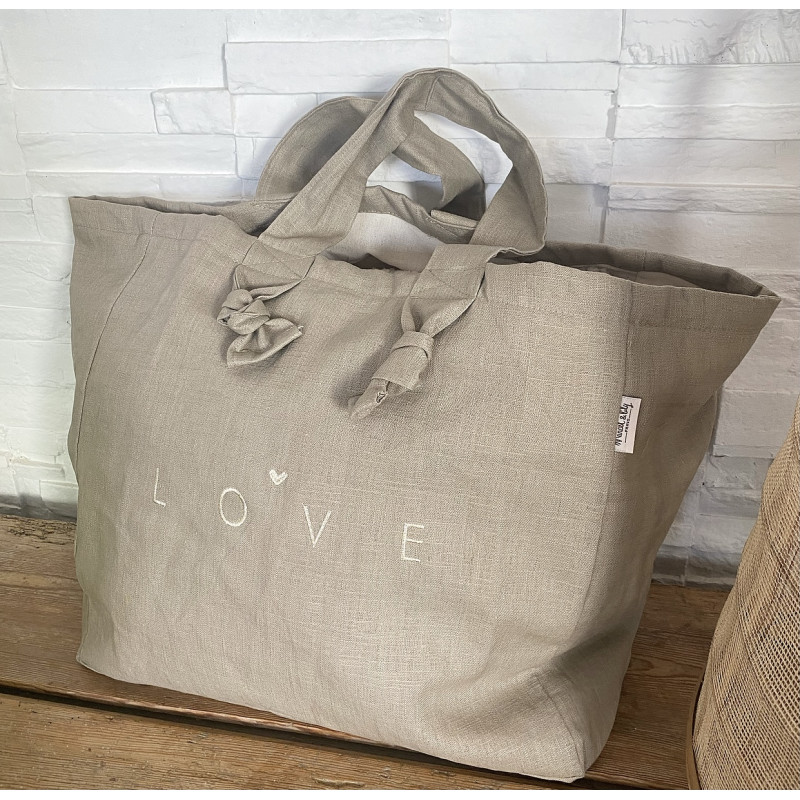 Cabas En Lin Gazelle- Brodé Love.