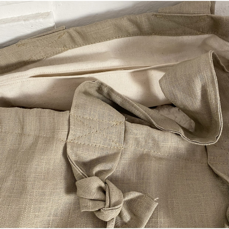 Dimensions : 40,5 cm (hauteur) x 40 cm (longueur) x 20,5 cm (largeur) + petite poche à l’intérieur. Exterieur : 100% Lin 230 gr/2 Interieur : coton prélavé 182 gr/m2