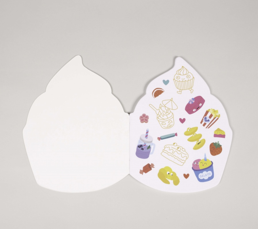 44 pages blanches et illustrées+ 2 pages de stickers. Ce cahier d’activité en forme de cupcake est composé de 44 pages d’illustrations fun, d’effets hologrammes, de couleurs fluo, de stickers et de feuilles vierges pour laisser libre cours à son imagination.