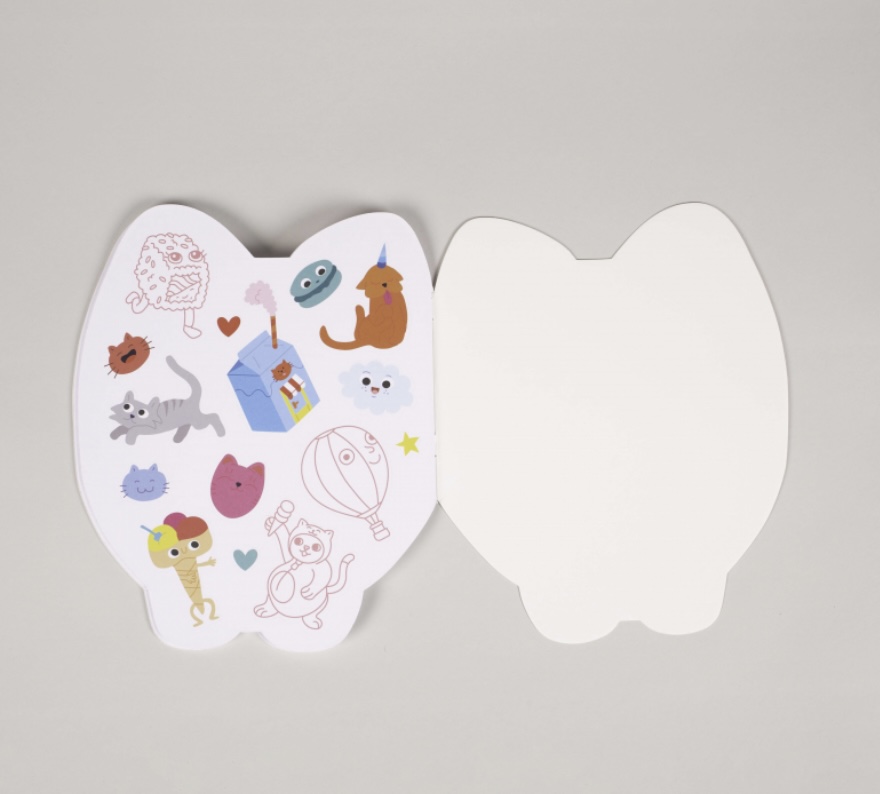 44 pages blanches et illustrées +2 pages de stickers. Ce cahier d’activité en forme de tête de chat est inspiré de l’univers kawaîi est composé de 44 pages d’illustrations fun, d’effets hologrammes, de couleurs fluo, de stickers et de feuilles vierges pour laisser libre cours à sa créativité.