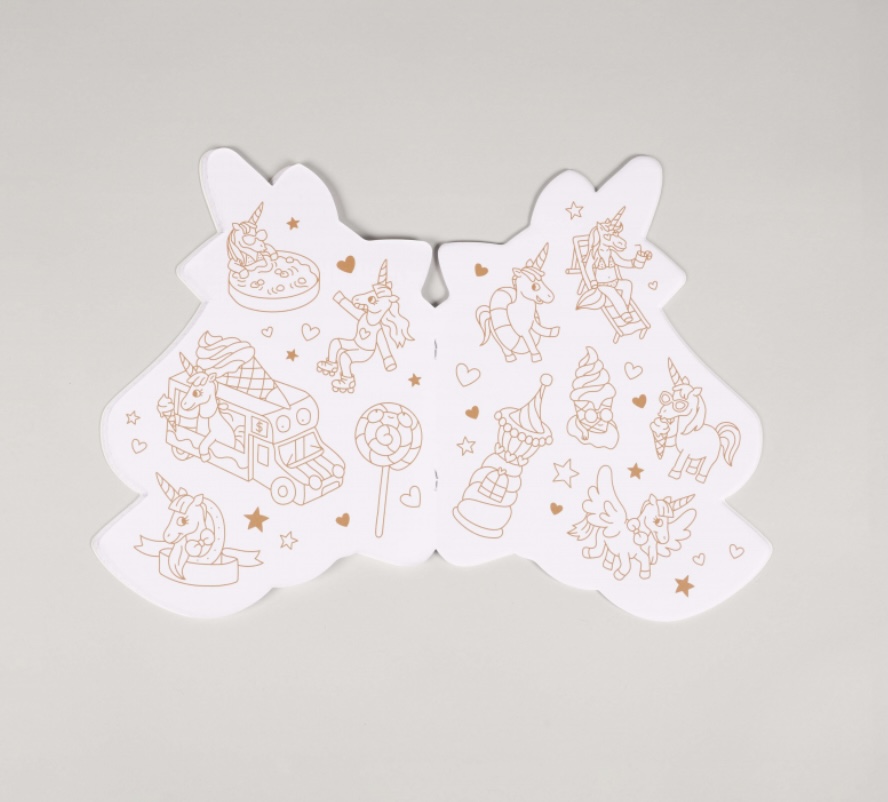 44 pages blanches et illustrées+ 2pages de stickers. Ce cahier d’activité en forme de licorne est composé de 44 pages d’illustrations fun, d’effets hologrammes, de couleurs fluo, de stickers et de feuilles vierges pour laisser libre cours à sa créativité.