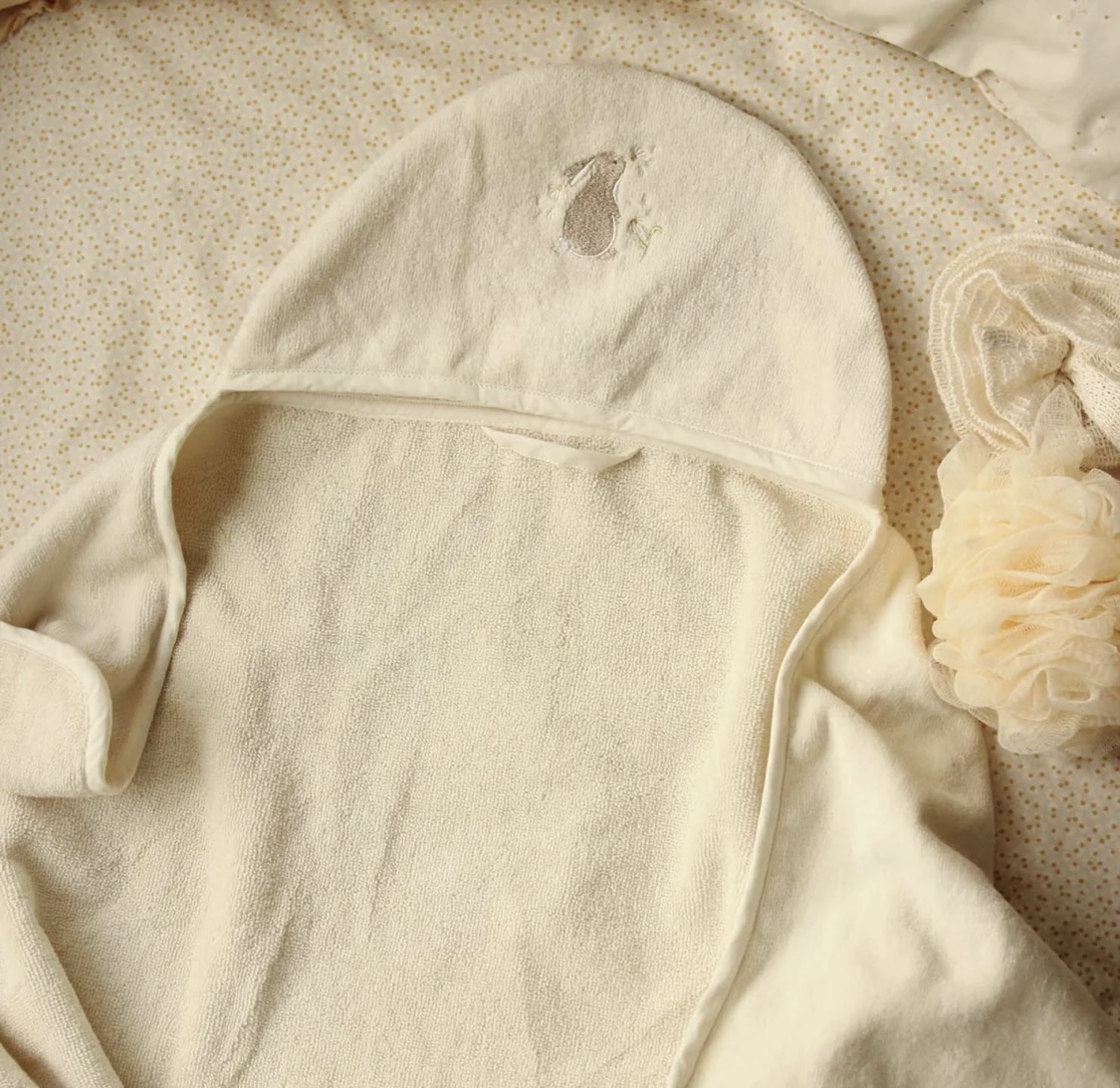 Cette cape de bain à capuche en éponge de coton biologique est merveilleusement douce pour les peaux les plus délicates. Taille extra large pour pouvoir en profiter le plus longtemps possible. La capuche est brodée d’un adorable lapin sur le devant.