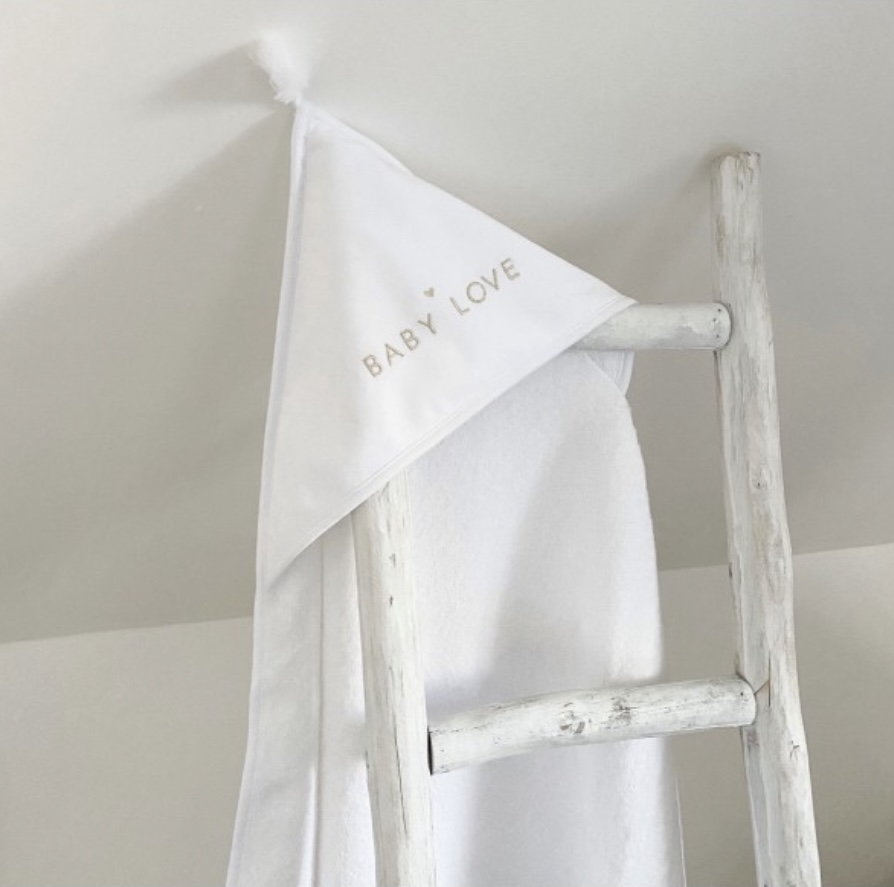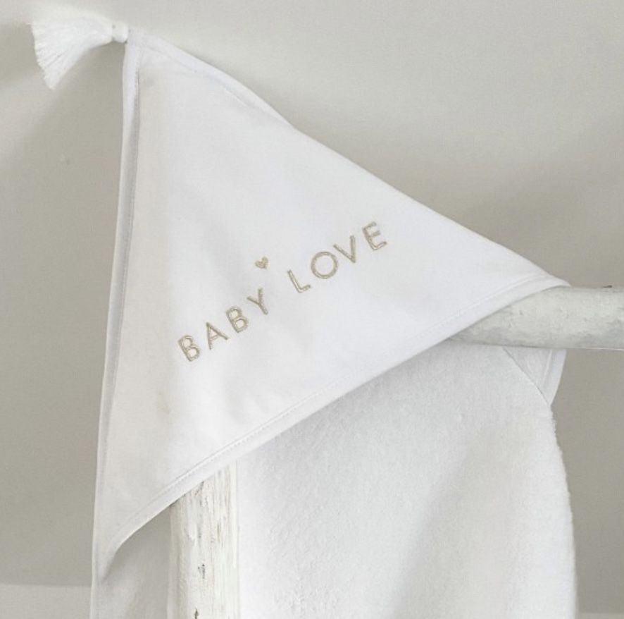 Jolie cape de bain brodée « baby love ».