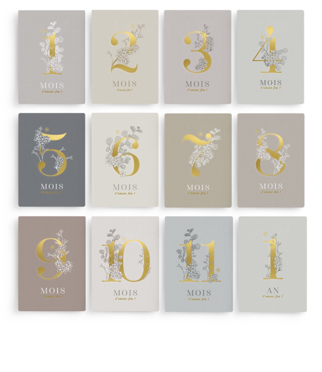 Composé de 12 cartes étapes grand format, avec une finition combinant dorure + pelliculage mat « Soft Touch », ce coffret vous permettra de prendre de superbes photos en souvenir et d’annoter au dos son évolution mois après mois.