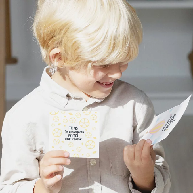 De jolies cartes motivation à glisser sous l’oreiller, dans un sac d’école ou encore à afficher dans la chambre de votre enfant, pour :