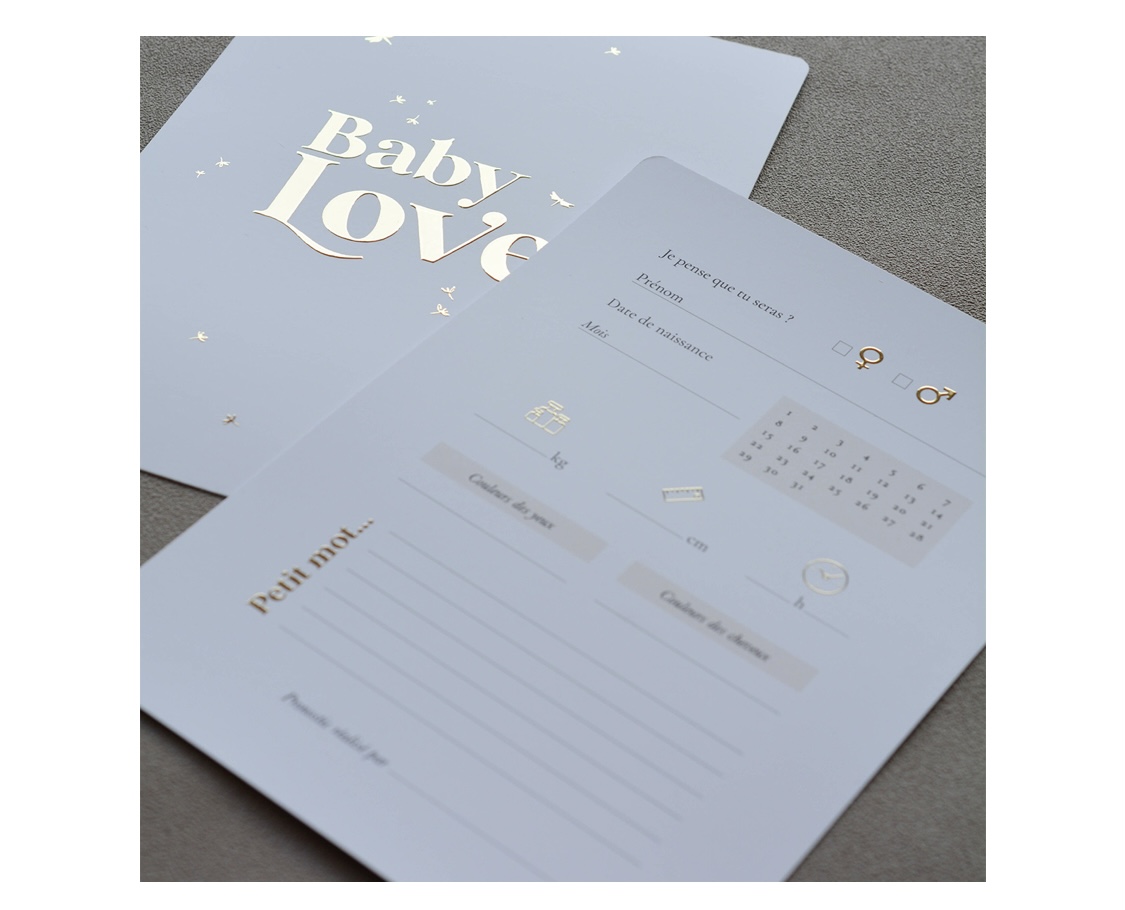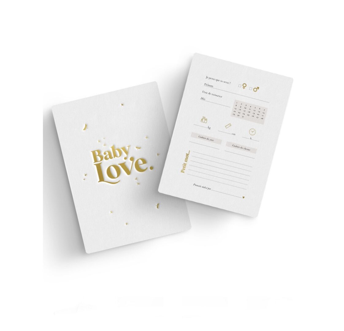 Afin d’animer votre babyshower, optez pour ces jolies cartes pronostiques ! Sexe du bébé, prénom, date, heure de naissance, poids, taille… vos invités pourront donner leurs estimations et laisser un petit mot pour la future maman ou pour le futur bébé. Un joli souvenir à conserver !