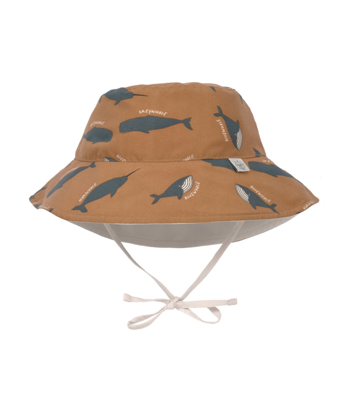 Chapeau anti-UV réversible enfants – Baleine, caramel 3-6mois.
