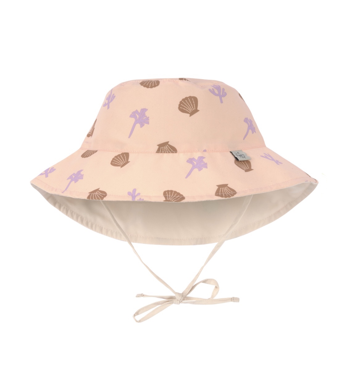 Chapeau anti-UV réversible enfants – Coraux, pêche rose 19-36 mois.