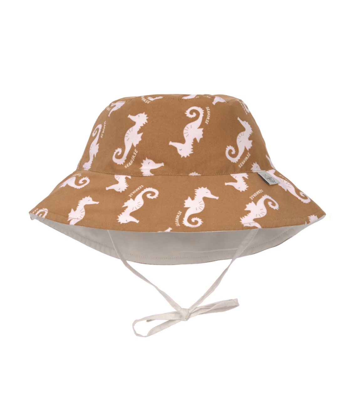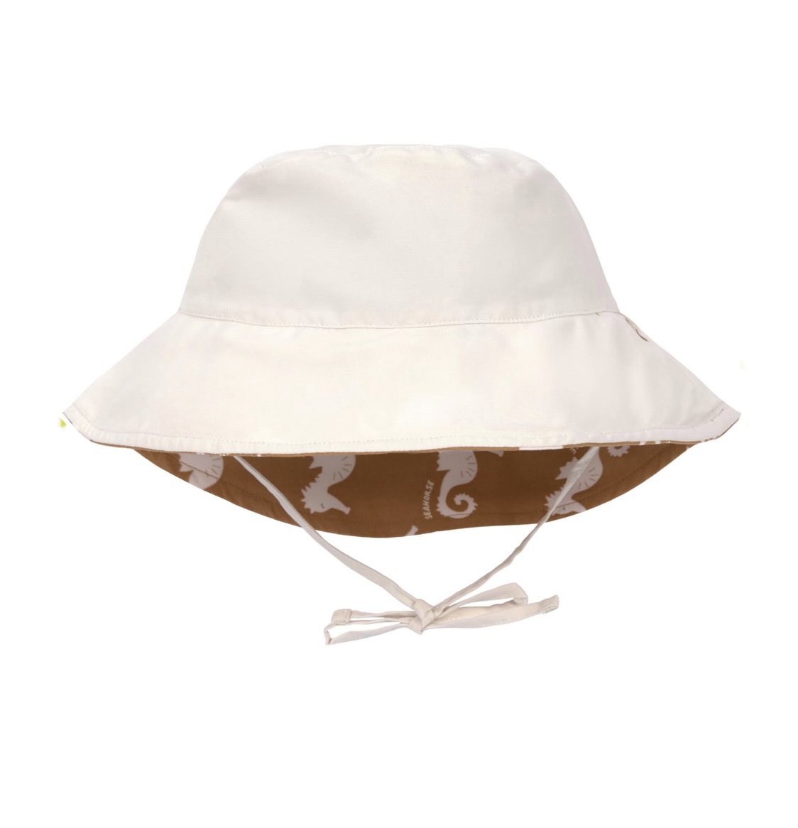 Chapeau anti-UV réversible enfants – Hippocampe, caramel 19-36mois.