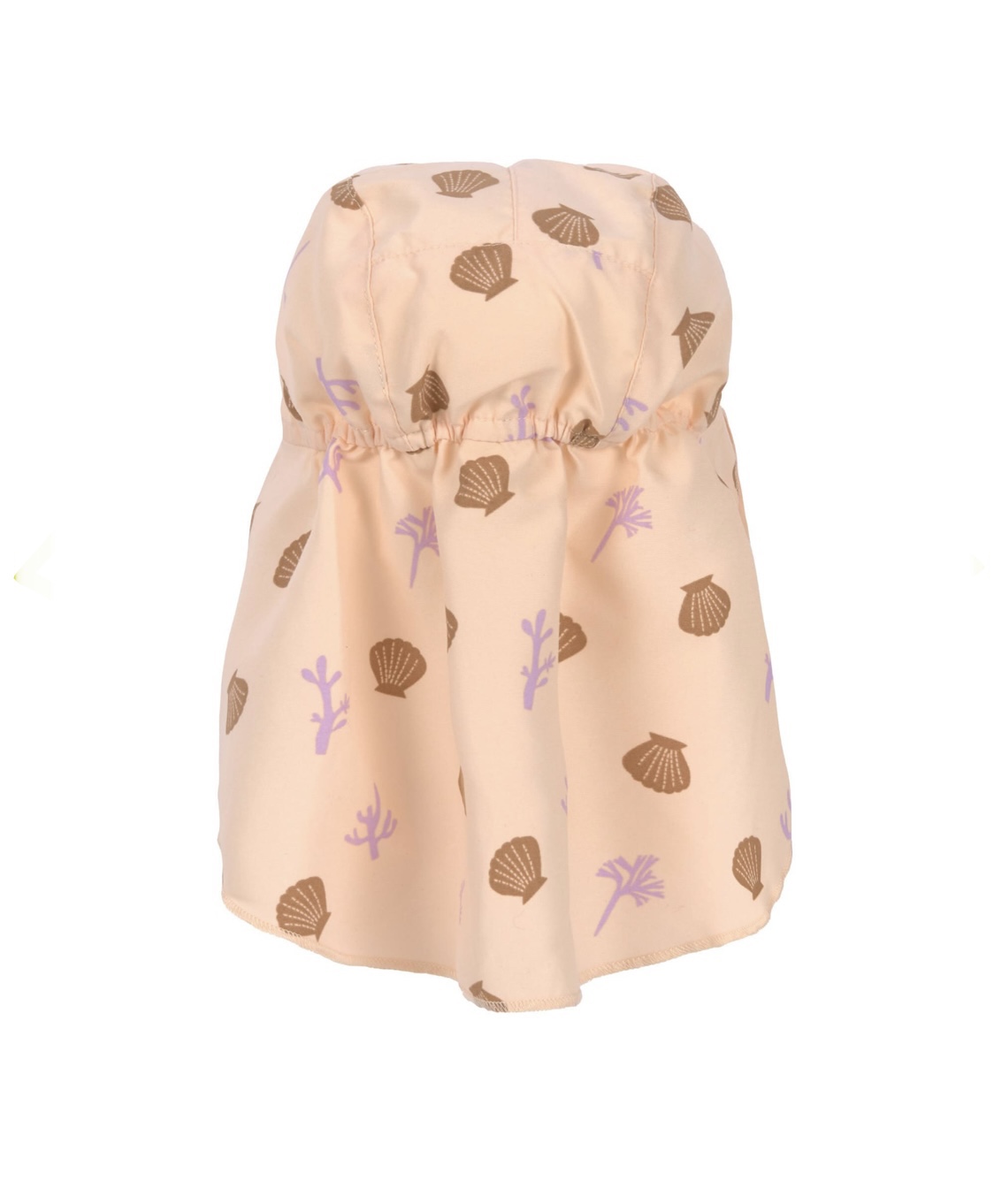 Chapeau Bébé (anti-UV & protège nuque) – Coraux, pêche rose 3-6mois.