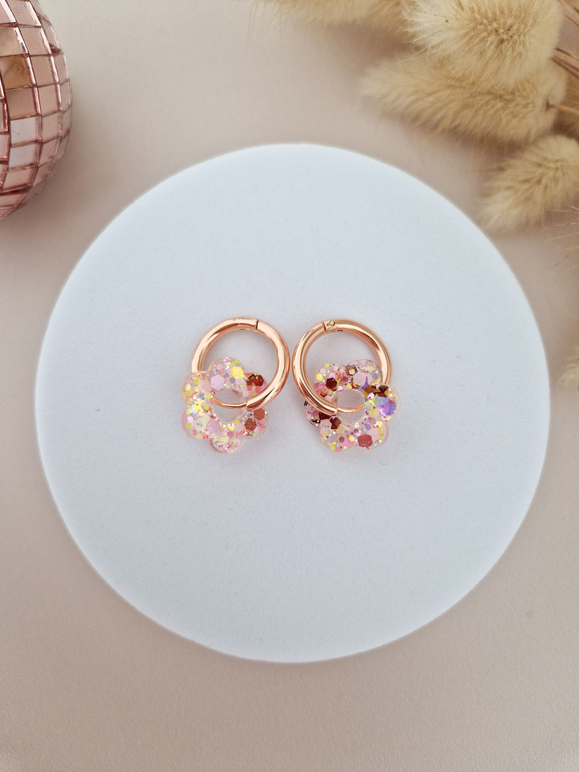 La fleur est faite main, en résine de marque française, avec inclusion de paillettes. Les nuances de couleur peuvent donc varier selon les commandes.