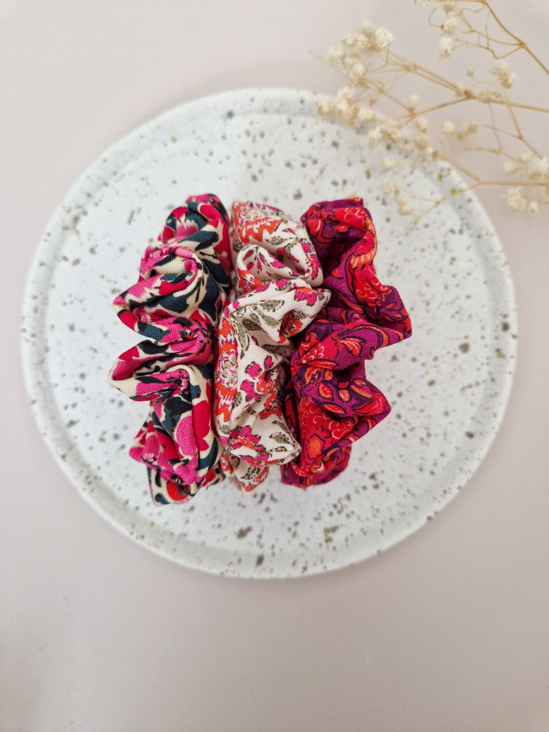 Offrez à vos cheveux une touche de style et de confort avec nos chouchous scrunchie. Pour habiller joliment vos coiffures et le poignet lorsqu’on en a plus besoin. Le chouchou ne tire pas sur les cheveux, réduisant ainsi le risque de casse. Disponibles dans une variété de couleurs et de motifs, nos scrunchies s’adaptent à toutes les occasions, que ce soit pour une journée décontractée ou une soirée élégante.