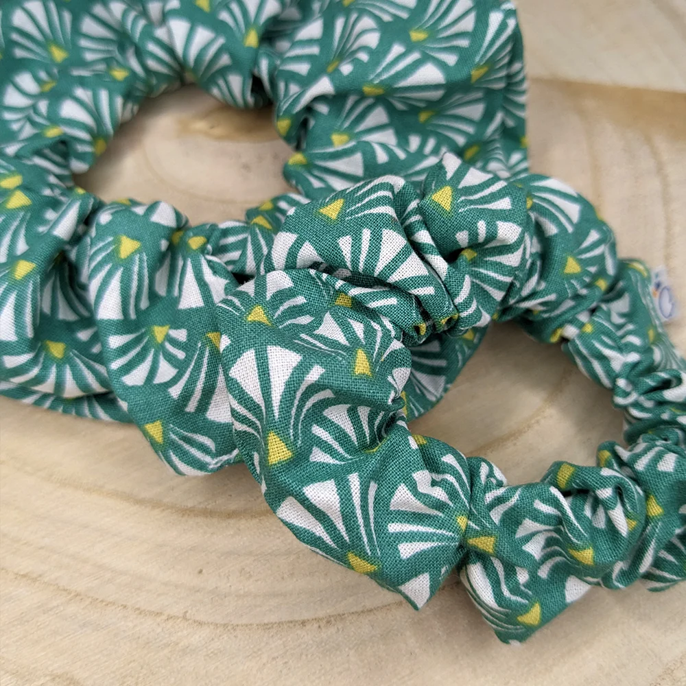 Subtile mariage entre éclat de blanc, touche de mangue et teinte émeraude. Ce chouchou lumineux inspire aux voyages et à la chaleur des pays exotiques. Vagues pour certains, rayons pour d’autres, ce tissu imprimé est frais et plein de saveurs. Ce chouchou en coton rayonnant apportera à votre chevelure une touche de gaieté et de dépaysement. Osez la couleur et les formes géométriques pour vos accessoires coordonnés !