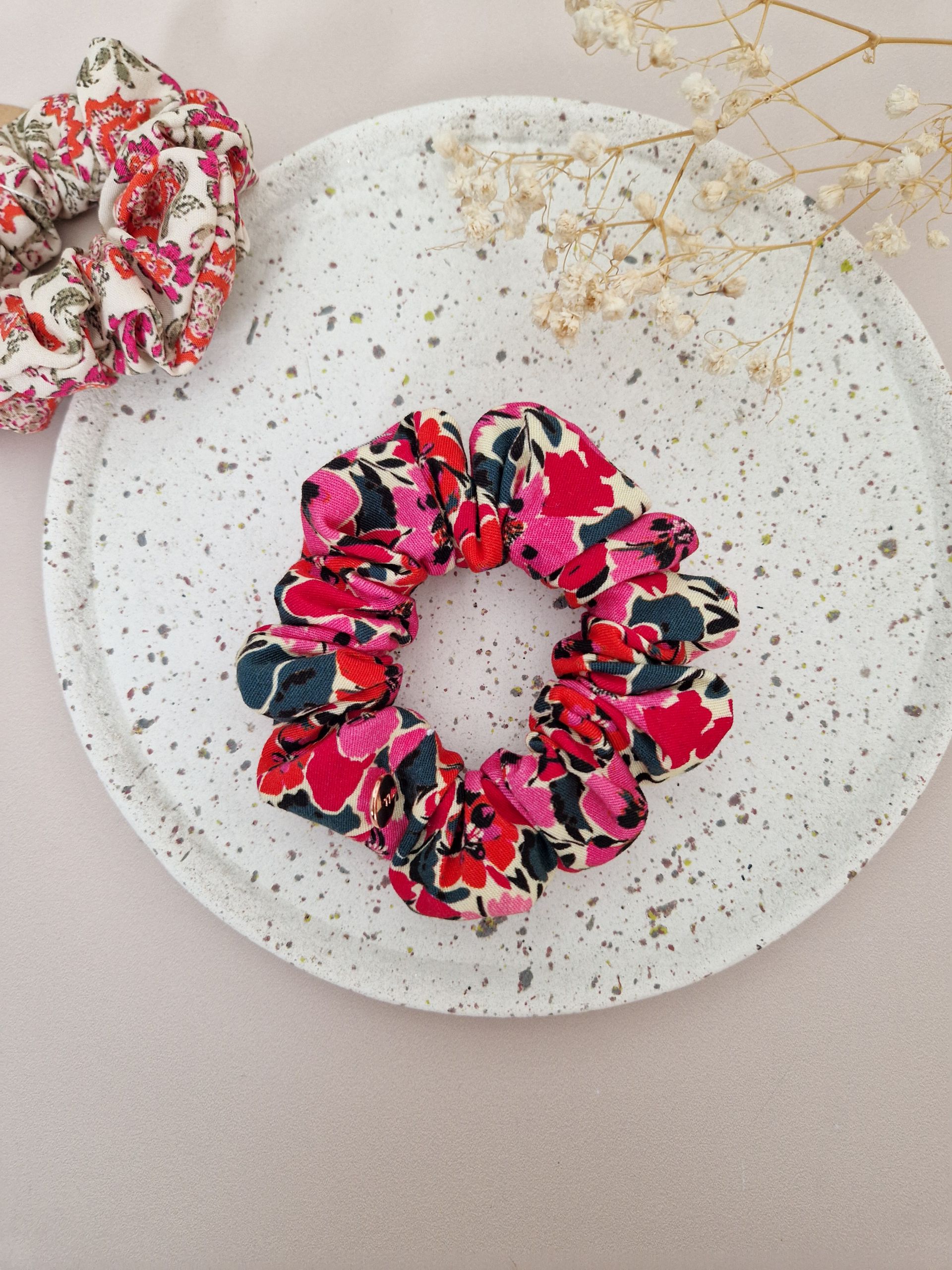Offrez à vos cheveux une touche de style et de confort avec nos chouchous scrunchie. Pour habiller joliment vos coiffures et le poignet lorsqu’on en a plus besoin. Le chouchou ne tire pas sur les cheveux, réduisant ainsi le risque de casse. Disponibles dans une variété de couleurs et de motifs, nos scrunchies s’adaptent à toutes les occasions, que ce soit pour une journée décontractée ou une soirée élégante.