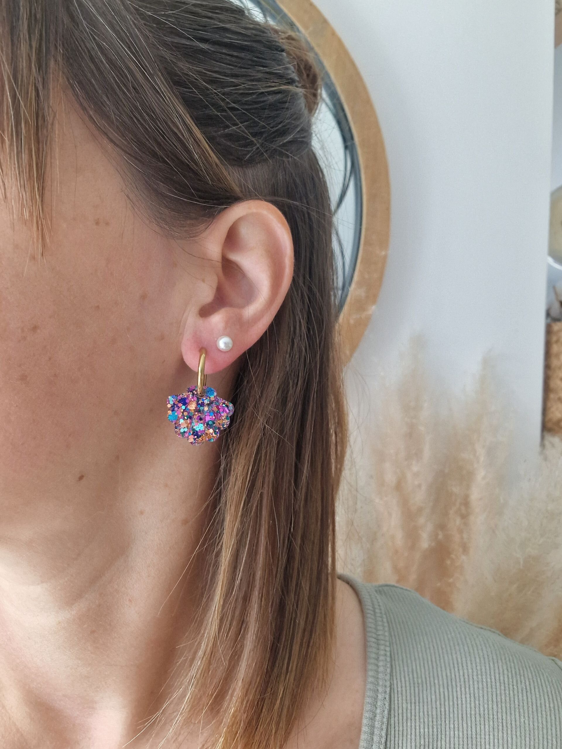 Les créoles Coco-Câline sont le bijou parfait pour ajouter une touche de fun et de couleur à votre look ! Avec leur design pétillant, ces créoles en forme de coquillage, ornées de paillettes scintillantes sont idéales pour exprimer votre personnalité avec style.
