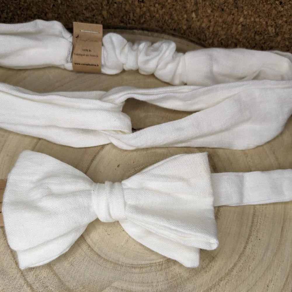 Réalisez votre magnifique coffret contenant un nœud papillon en lin et un headband cheveux assorti ! Choisissez la couleur de tissu qui vous convient parmi les nombreux coloris de lins tissés en France de mon stock. Faites plaisir avec des produits faits main et uniques pour montrer votre amour au grand jour ! Un cadeau parfait et original pour un couple tendance !