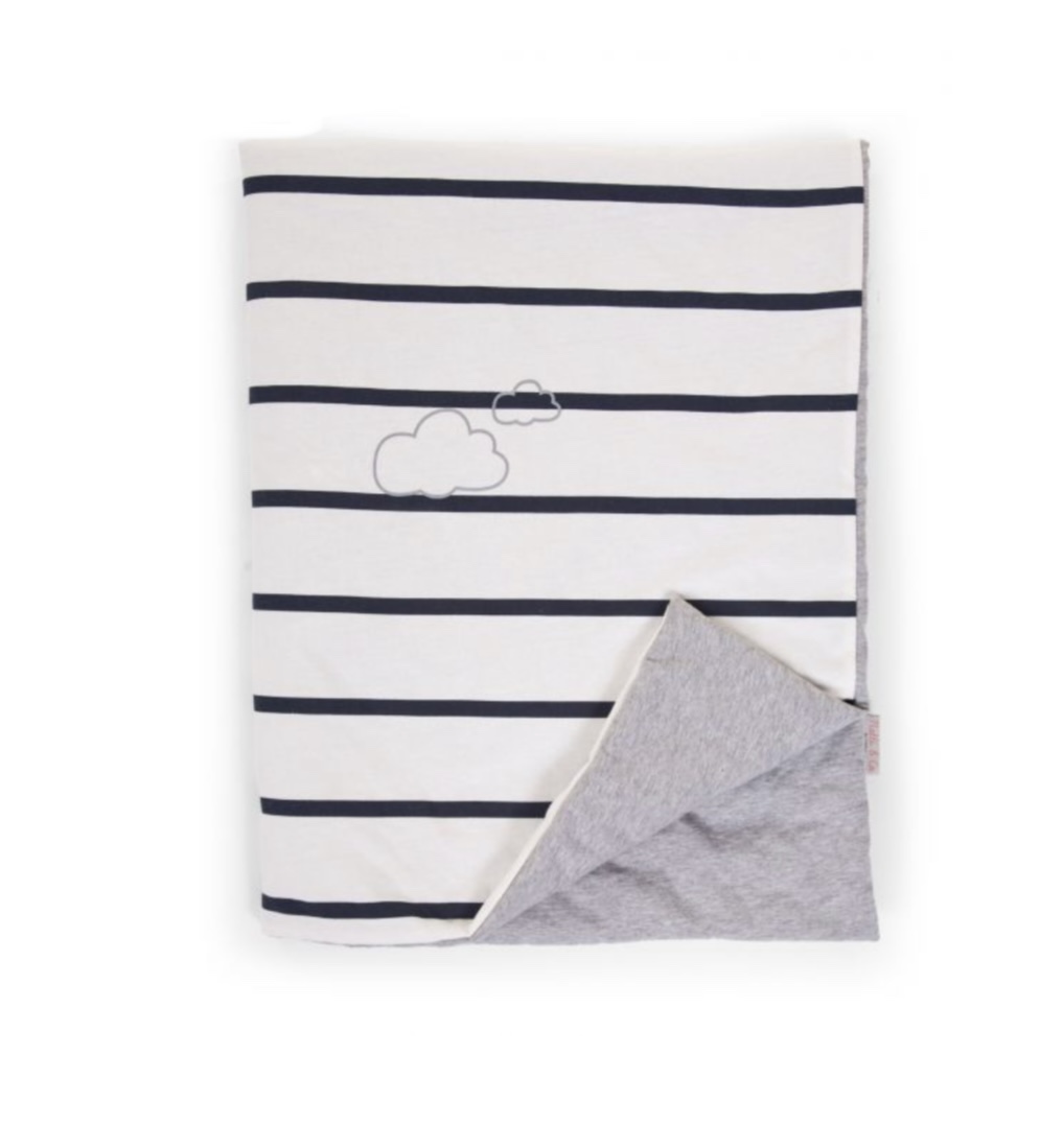 La couverture Marin de la marque Childhome est douce et pratique pour envelopper bébé lors de ses sorties, dans la poussette comme à la maison.