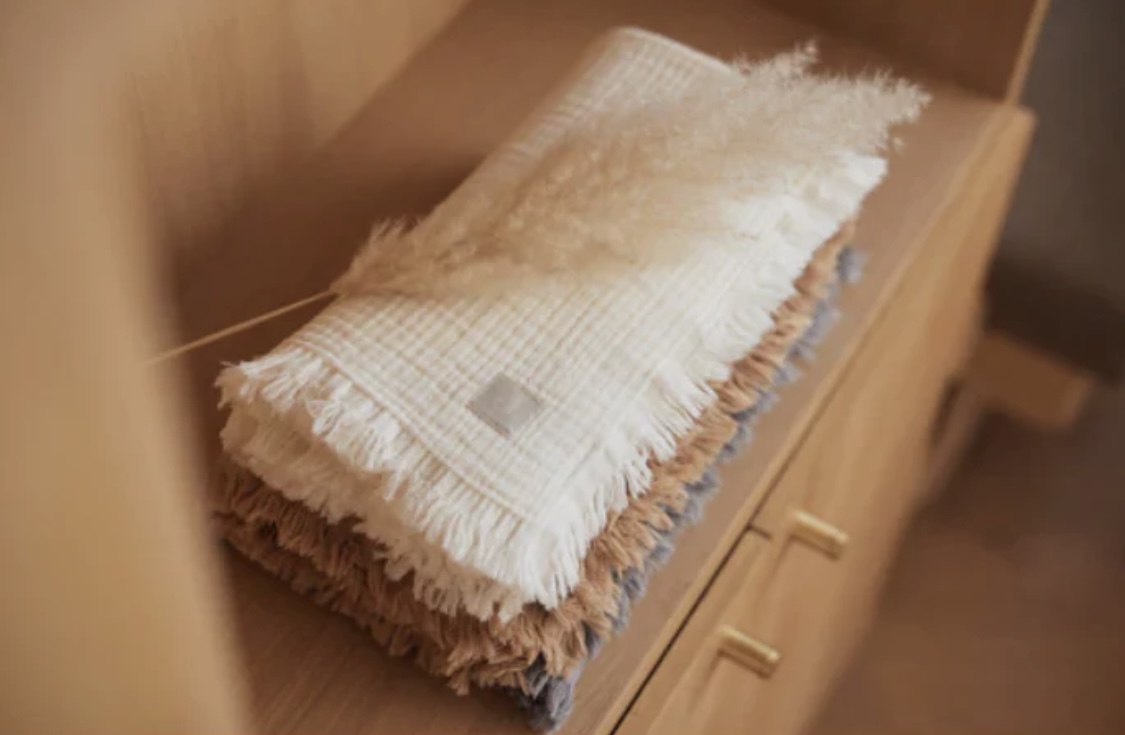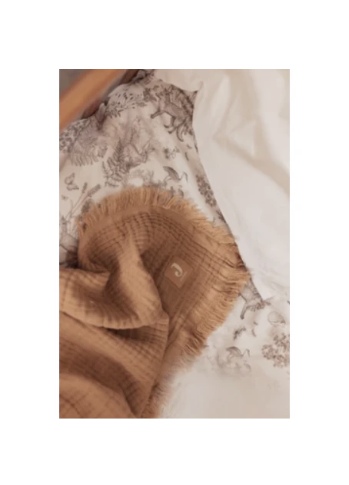 Couverture gaze de coton frange biscuit 75x100cm- Jollein.